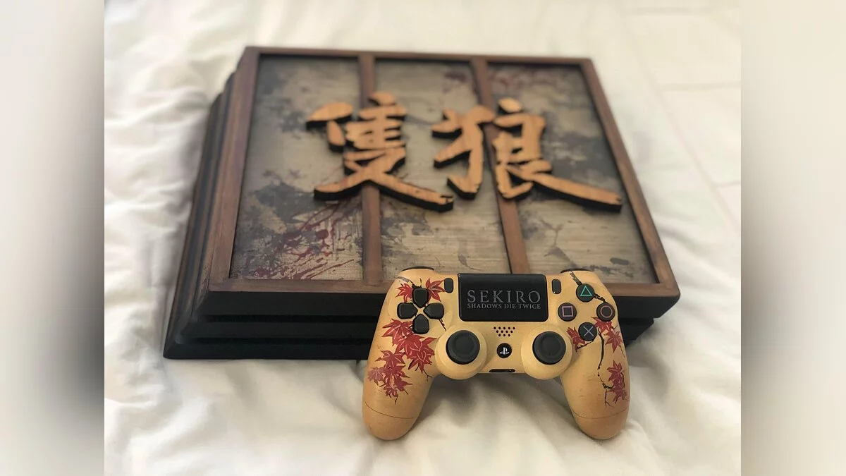 Закрывает наш сегодняшний список PS4 Pro. Точнее ее версия, выполненная в стилистике одного из самых известных эксклюзивов — Sekiro: Shadows Die Twice. У этой версии множество различий с обычной консолью. Ее лицевая панель облицована орехом, а верх украшен декоративными иероглифами из бамбука и холстом с традиционной росписью.