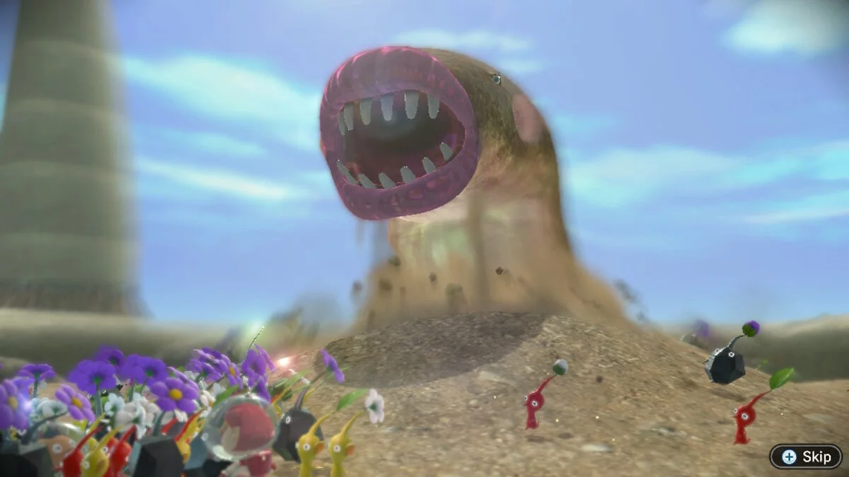 Конечно, чувствуется, что история написана прежде всего для детей. Но я не зря назвал сюжет почти умилительным. Несмотря на наивный вид игры, в ней всё же убедительно показана жестокость дикой природы. Почти каждое животное на планете не прочь полакомиться одиноким пикмином. Разработчики не скупились на анимации охоты и проглатывания. И пускай игра обходится без кровавых подробностей, всё же процесс выглядит малоприятным. А после сцен с гибелью брошенных пикминов и вовсе хочется переиграть день с нуля.