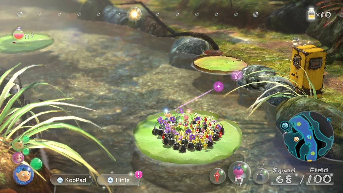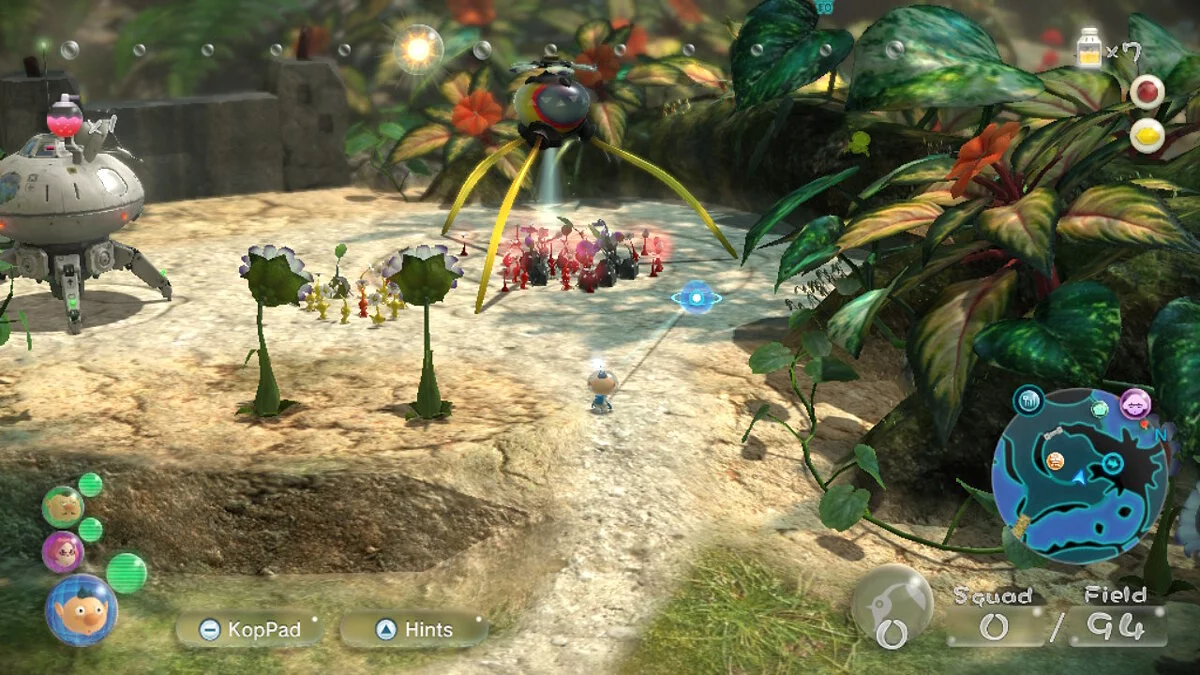 Но история здесь не главное. Главное в Pikmin 3 Deluxe — геймплей. Игра умудряется сочетать в себе аж три жанра: стратегию, головоломку и приключение. Из известных аналогов вспоминается Overlord 2007 года. Здесь так же необходимо управлять одним персонажем и раздавать приказы своим подчиненным. А точнее — метнуть преданного пикмина во врага или к объекту для взаимодействия, чтобы исполнительный работник принялся за дело. Если же кто-то из подчиненных отстал или находится в опасности, его можно подозвать к себе при помощи специального свистка.