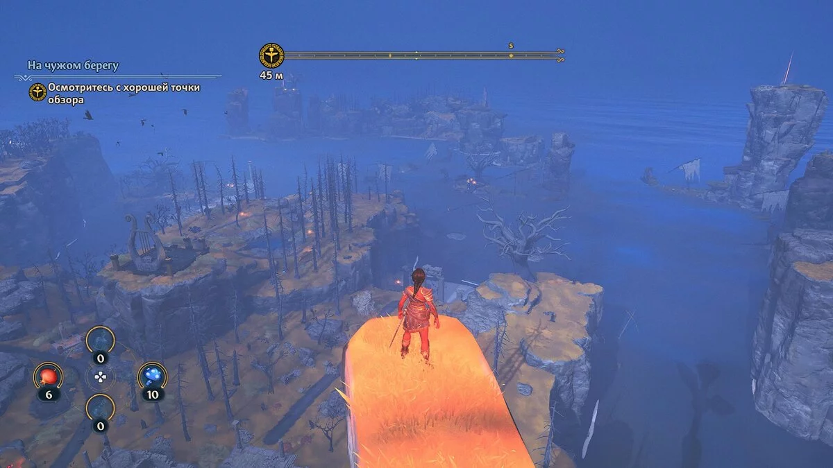 Чтобы начать исследование территории, нужно забраться на вышку статую божества. После этого откроется карта, но многочисленных значков вопроса вы на ней не увидите. Всё придется искать самостоятельно. Для этого можно осмотреться и пометить сундуки и прочие точки интереса. Немного напоминает обзор с помощью дрона в Ghost Recon: Breakpoint.