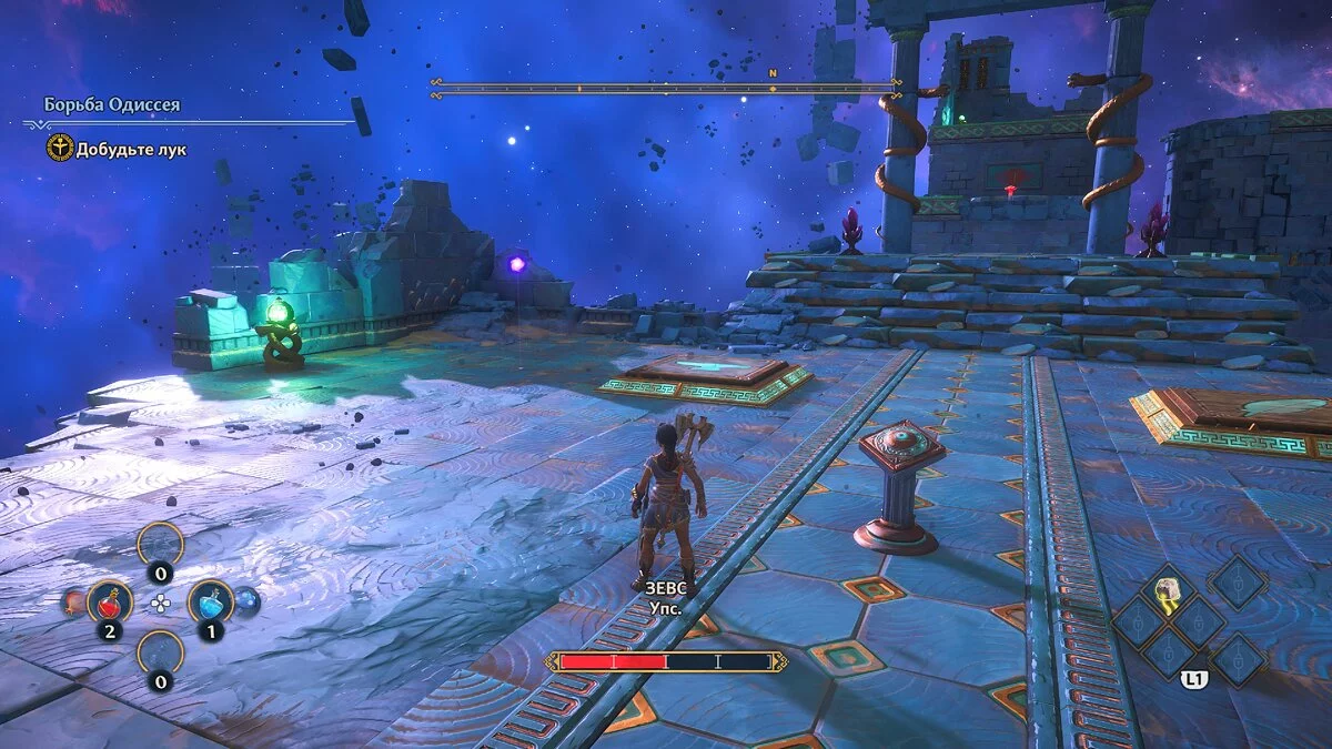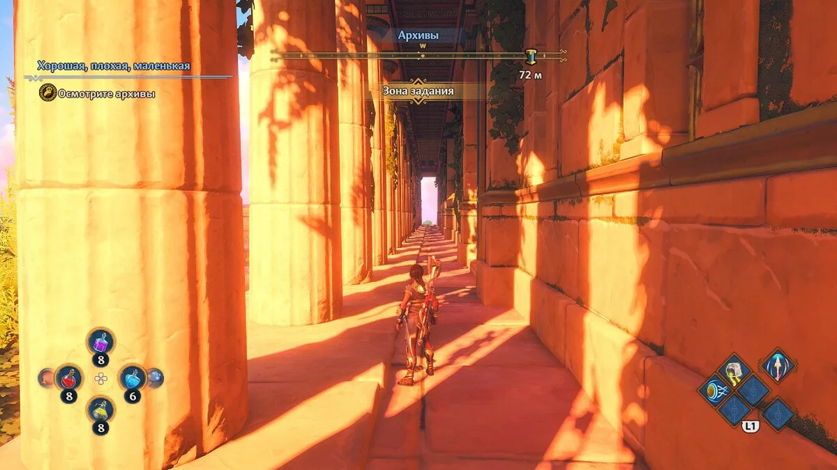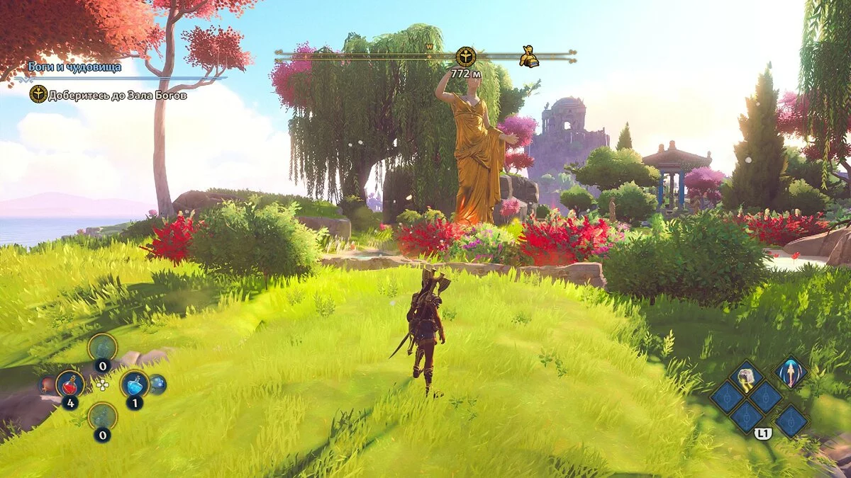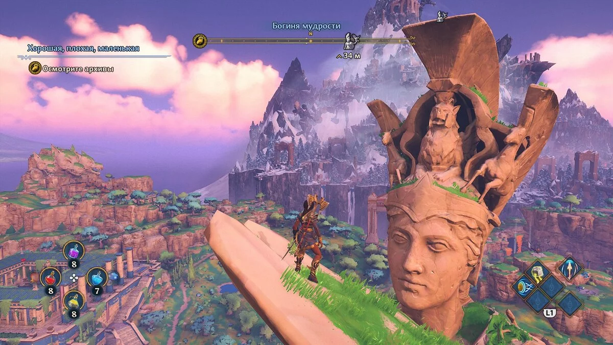 С обязаловкой у Immortals Fenyx Rising, кстати, порядок. Не хотите выполнять сайд-квесты — не надо. Единственный момент: непонятно, зачем разработчики заставляют проходить несколько испытаний в финальной части игры, причём одно из них (стрельба из лука) выполнить без навыка управления скоростью полета стрелы сложновато. Это лишь сбивает темп, который игра сама и задает в финале. Выглядит как растягивание времени.