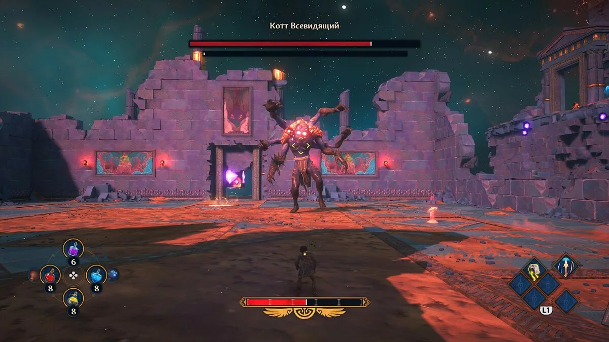 Все апгрейды доступны в зале богов — центральном хабе игры. Причём некоторые способности могут серьёзно помочь в испытаниях и перемещении по миру. Сражения с врагами, особенно легендарными, тоже могут доставить немало трудностей даже на среднем уровне сложности. Если следовать только сюжету и не выполнять побочные активности, то может быть нелегко. Дело в том, что без временных затрат персонажа не прокачать как следует. Благо, если не хотите заморачиваться, всё решается простым понижением сложности.