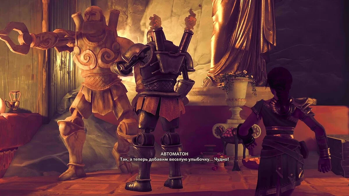 На первый взгляд может показаться, что владения Гефеста меньше всего похожи на Древнюю Грецию — это скорее что-то фэнтезийно-стимпанковое. Автоматоны чем-то напоминают своих одноименных коллег из Syberia и, отчасти, железных или механических големов из классических фэнтезийных миров. Тем не менее примечательно, что всё это не выдумки сценаристов. Механические создания в мифах действительно были: можно вспомнить, например, бронзового Талоса — по сути, мифического робота.