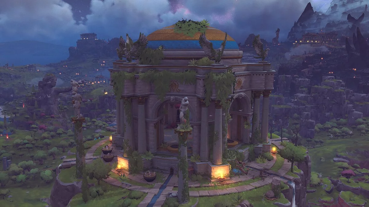 Четыре основных региона принадлежат богам, которых нам и предстоит спасать. У каждого из них своя атмосфера: на территории Афродиты вечно царит весна и цветут сады, в землях Гефеста расположена огромная кузница и повсюду застыли автоматоны, логово Ареса выглядит как одно большое побоище, а Афина может похвастать величественным архивом и памятниками.