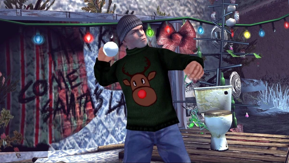 Главный герой может создавать себе новогоднее настроения, избивая карлика-лепрекона, ломая чужих снеговиков и забрасывая прохожих снежками. В реальности мы подобное хулиганство не рекомендуем, но почему бы не спустить пар за все страдания уходящего года в отличной видеоигре?