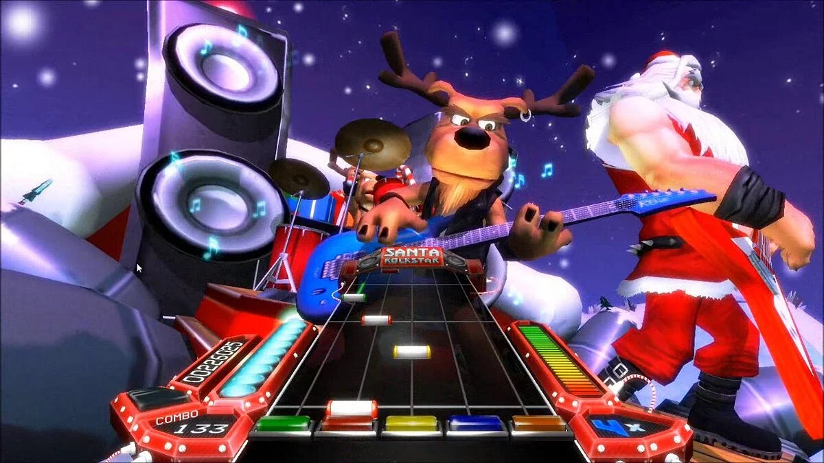 По сути, вся игра — это непрекращающийся тур Санты, где вместе со своей бандой он будет исполнять метал-каверы новогодних мелодий, написанные специально для игры. Если после Guitar Hero у вас остался гитарный контроллер, то игра точно сможет развлечь драйвовыми версиями Jingle Bells и We Wish You a Merry Christmas.
