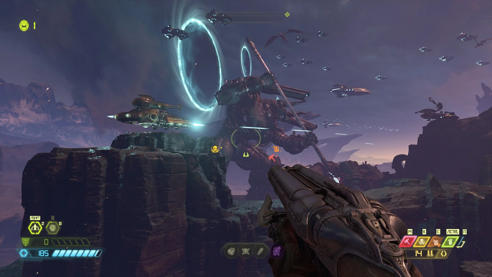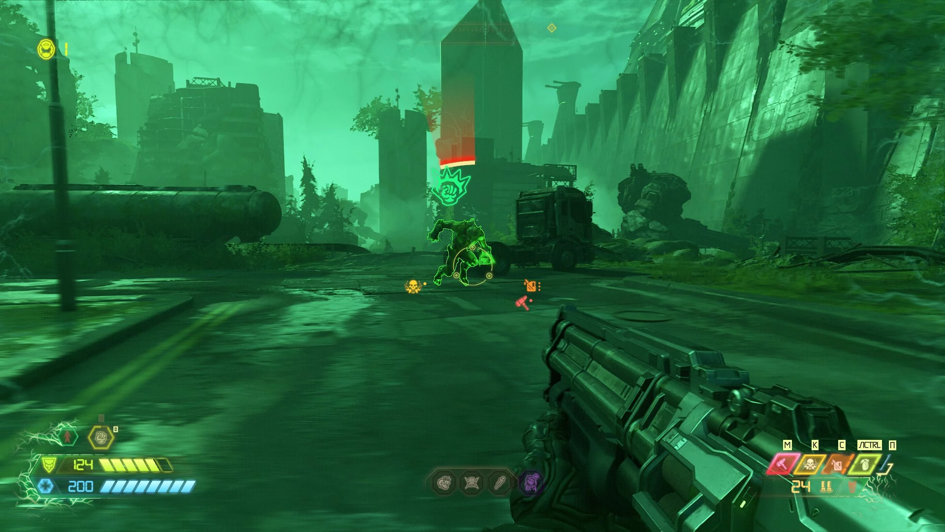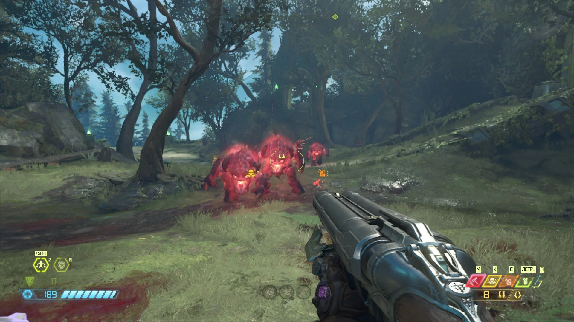 Каждый новый противник серьёзно влияет на ход сражения. Сначала DLC знакомит нас с тварями, которые в момент смерти издают усиливающий врагов крик. Следом на Думгая нападает бронированный Барон Ада, с которого сначала нужно сбить защиту, а затем поскорее прикончить: замешкаешься — и враг восстановит броню, обнулив все твои усилия. Каменных импов берут только выстрелы из дробовика, оснащённого особой модификацией. Рыщущие вешают на героя солидный дебафф, который можно снять, лишь убив врага в ближнем бою.