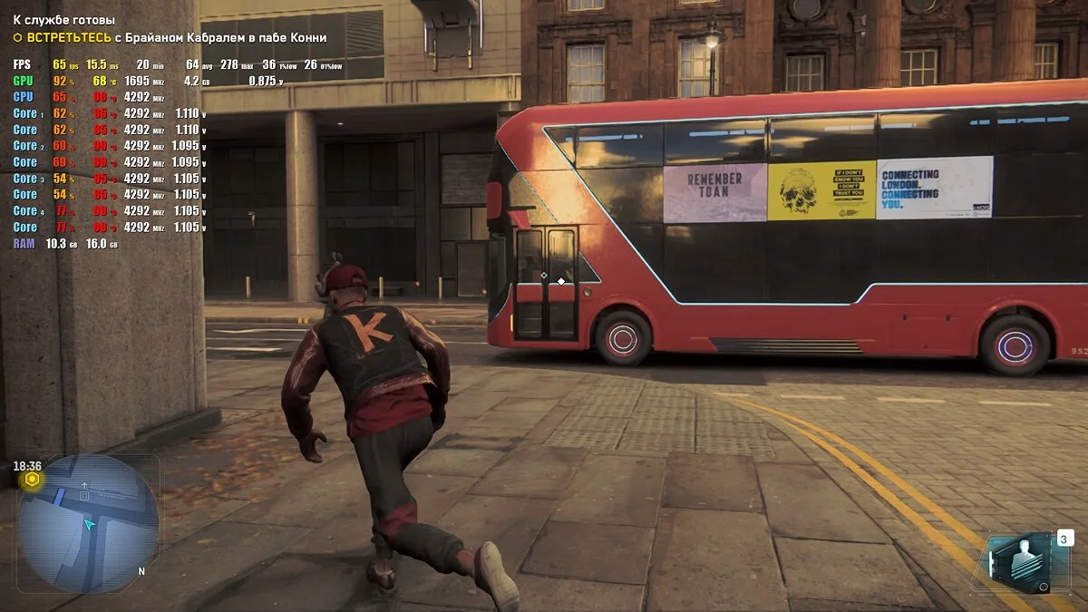 В Cyberpunk 2077 мы остановились на высоких настройках графики с включенным DLSS в режиме производительности. Трассировку лучей оставили на минимуме. 60 кадров в секунду игра показывает, но стабильными их не назовешь — плотность населения в кадре и объем детализации города сильно влияет на FPS.
