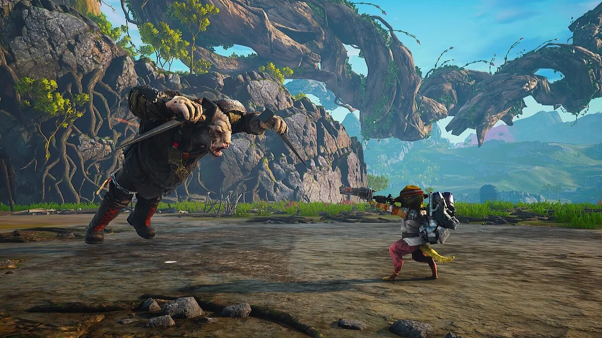 Не лучше реализованы и сами сражения. На словах боевая система кажется крутой: в Biomutant есть немало видов орудий ближнего и дальнего боя, крутых приёмов, увороты и парирования, эффектные способности, которые позволяют замораживать, поджигать или гипнотизировать врагов — вот только на деле всё это просто не работает. Какими бы навыками герой не пользовался, а бои будут одинаково скучными.