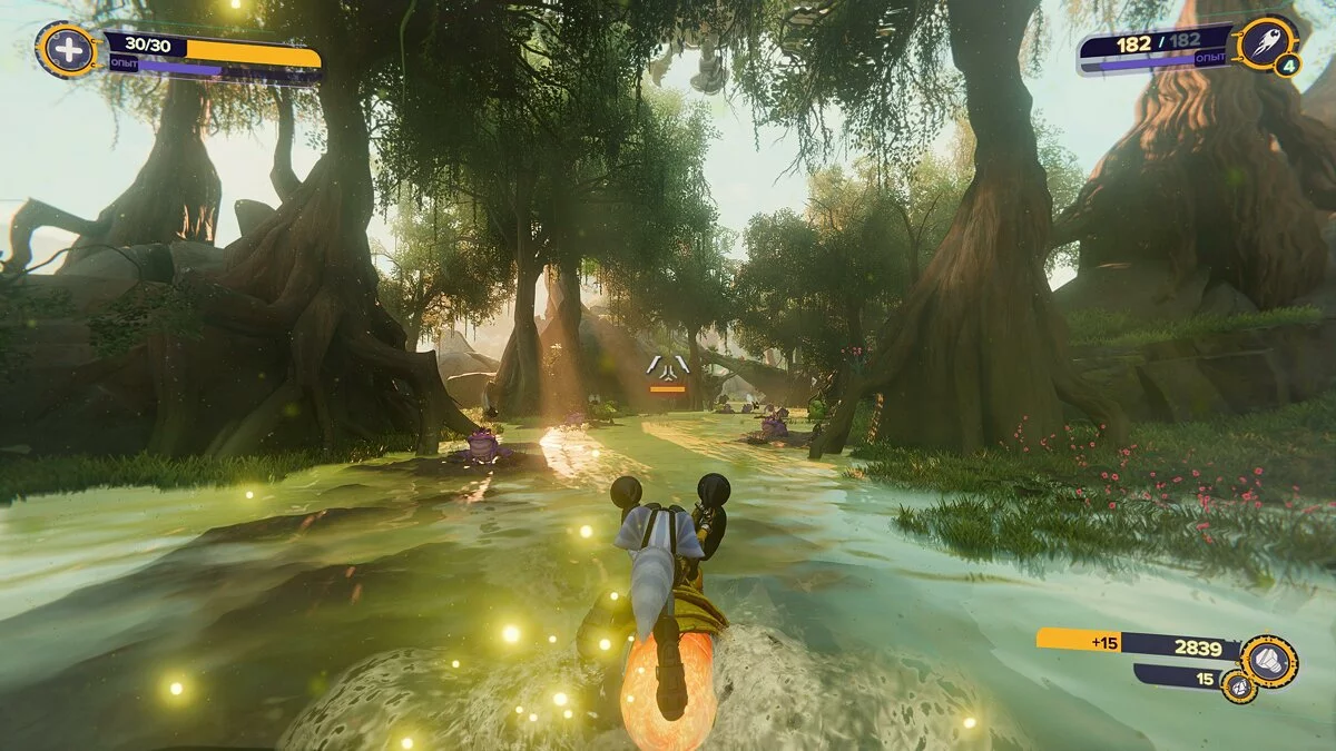 Как и обещали разработчики, любые игровые действия происходят за доли секунды, поэтому телепортация выглядит совершенно бесшовно. Все загрузки спрятаны за видеороликами. А еще игра получила полноценную поддержку контроллера DualSense: у Грозовой дуги при слабом нажатии курка раскручивается ствол для повышения темпа огня, а при полноценном — выпускается поток снарядов, наносящий значительный урон противнику. Да и доносящиеся из контроллера различные звуковые эффекты усиливают эффект. Хотя при игре в наушниках их почти не слышно, поэтому в таком режиме можно и вовсе отключить звук из геймпада.