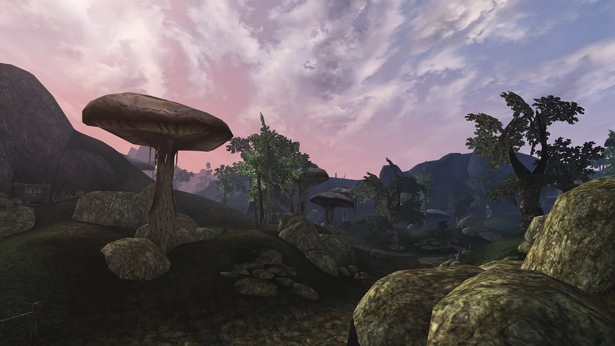 Вообще, мир TES в третьей игре еще дальше ушел от условных стандартов Dungeon and Dragons. Здесь жили невиданные расы, вроде разумных кошек-кхаджитов, по лесам и оврагам сновала необычная фауна (один из интересных квестов — вылечить королеву гигантских насекомых-термитов, озверевших от горя), а путешественники перемещались верхом на огромных блохах. Про орков и разнообразных эльфов, впрочем, разработчики тоже никогда не забывали.