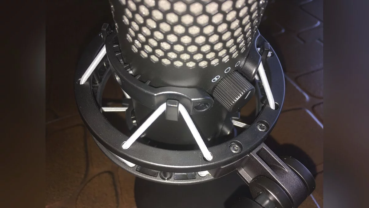 На подставке микрофон держится при помощи антивибрационного и ударопрочного крепления. Это минимизирует посторонние звуки при случайных ударах по столу или подставке. Крепление надежное, но монтаж и демонтаж может потребовать времени. Впрочем, поставляется микрофон уже в сборе.