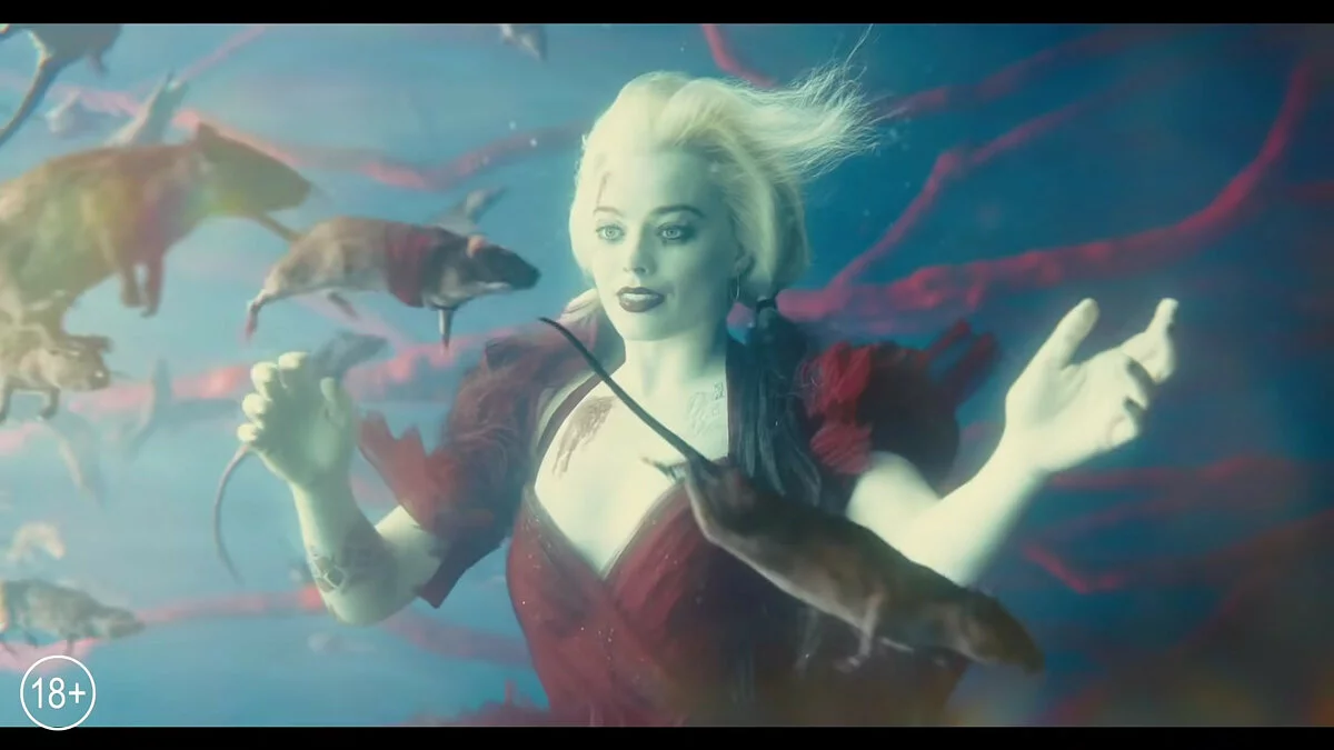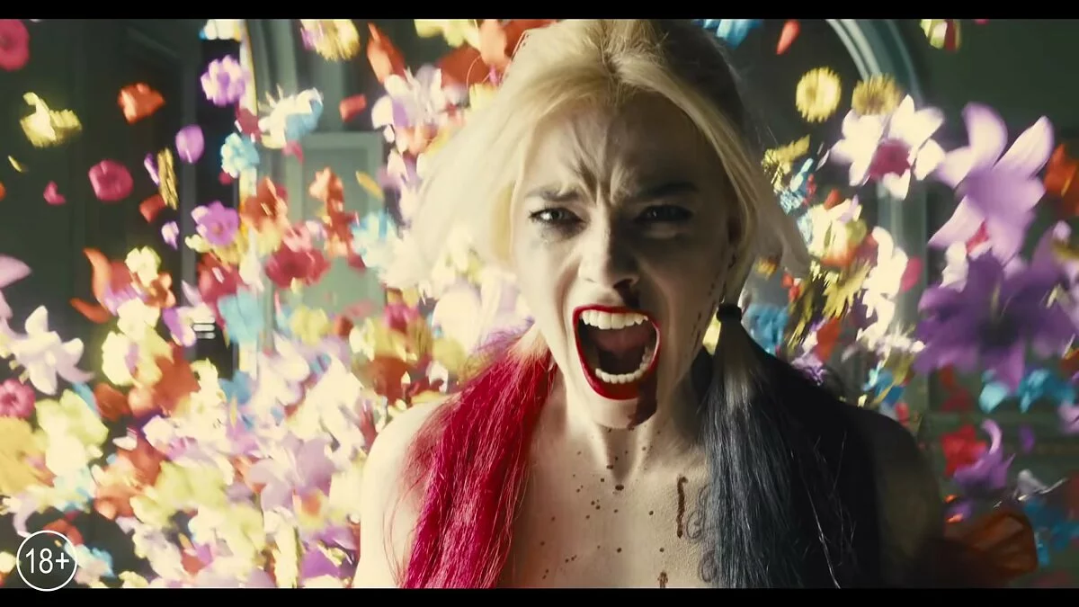 «Отряд самоубийц» эпично выходит из тумана. Харли Квинн лежит в необычном водоёме, по которому растекается кровь. Местный президент предлагает бывшей подруге Джокера руку и сердце, а над ними летают диковинные птицы. Все эти сцены очаровывают.