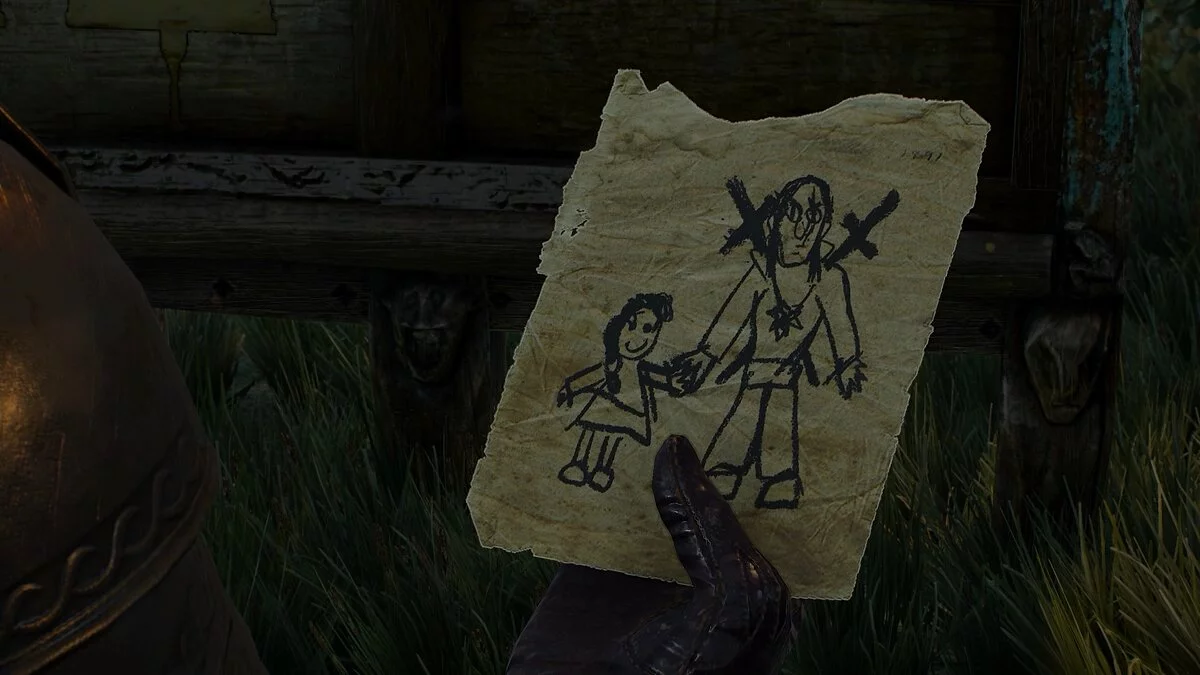 Краем глаза ведьмак замечает выжившую девочку, но она шарахается прочь и убегает. Вскоре «Белый волк» узнаёт, что ребёнка испугали кошачьи глаза ведьмака: у убийцы были такие же.