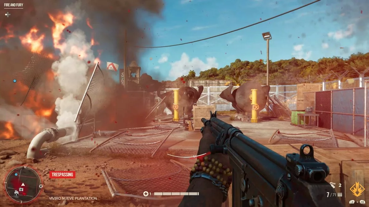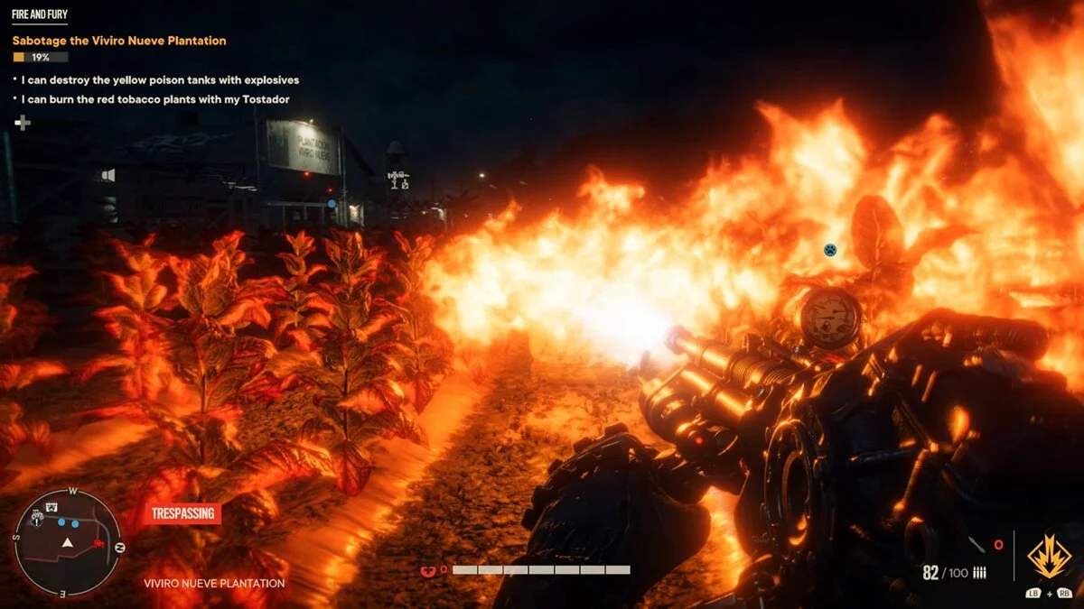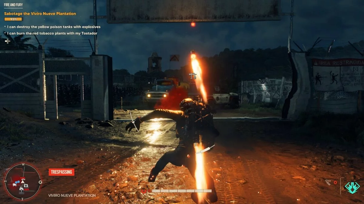 Стоит отметить, что сюжетные миссии получились годными. К примеру, одно из стартовых заданий косплеит Far Cry 3 и отправляет Дани поджигать плантации. Героиня хватает огнемёт, пару коктейлей Молотова и идёт сеять хаос.
