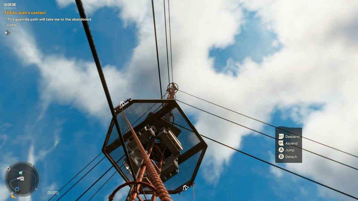 С перемещением по миру в Far Cry 6 тоже всё неплохо. Если Дани путешествует пешком, то может воспользоваться крюком-кошкой и забраться куда повыше. Слететь с горы можно с помощью парашюта или вингсьюта.