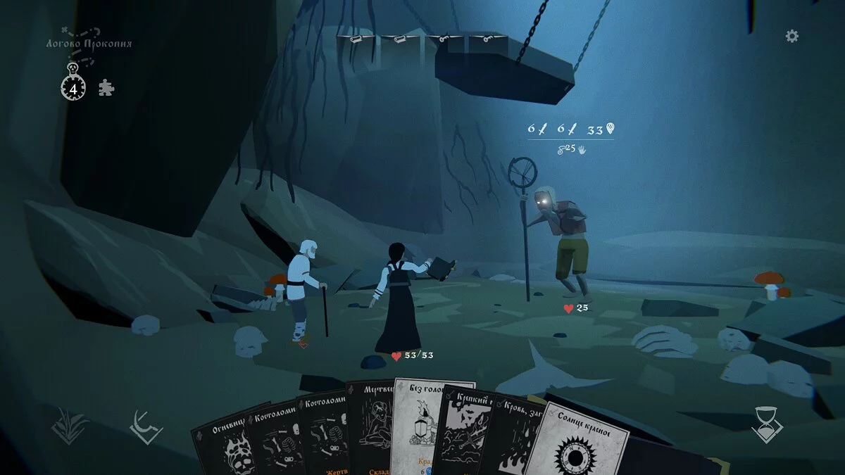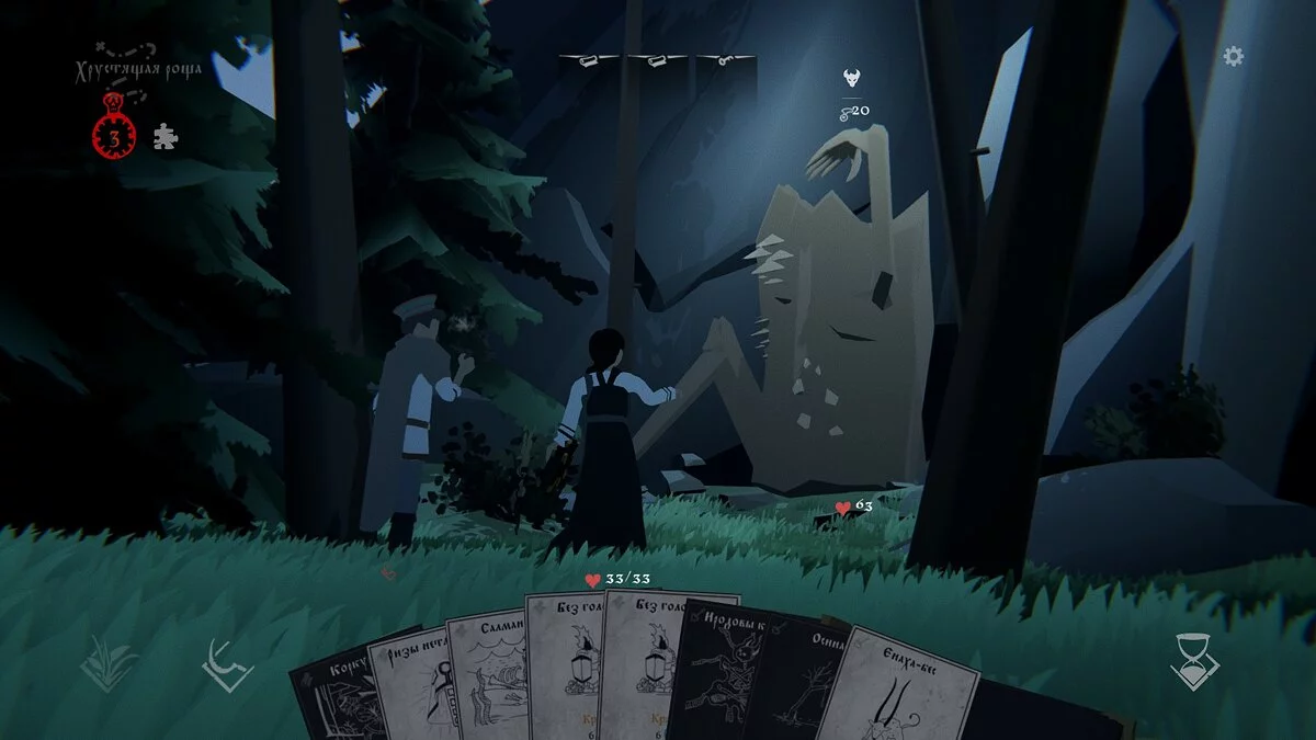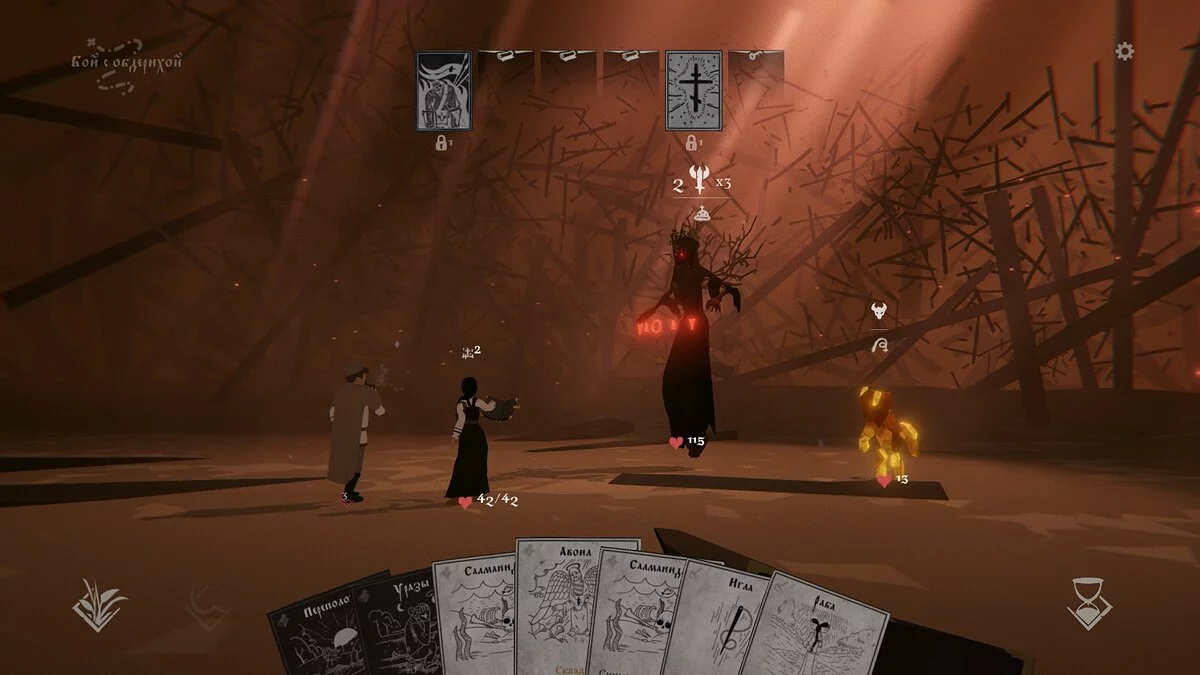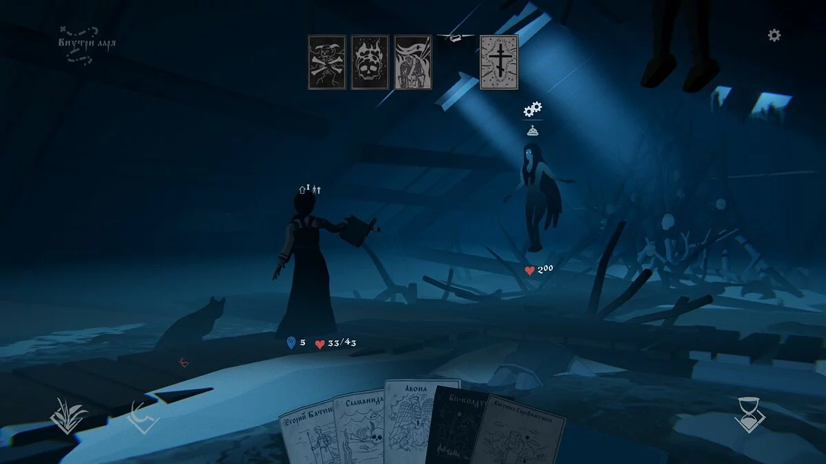 Бои в Black Book карточные. Василиса достаёт из колоды карты, которые атакуют, наносят порчу, защищают от урона и много чего ещё. Зачастую драки заставляют пересобирать колоду и долго думать — без основательной подготовки героине не выжить.
