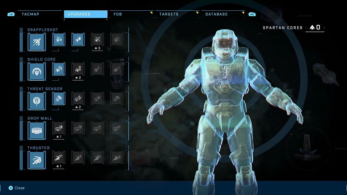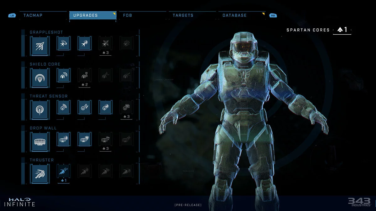Что до прокачки, то говорить пока можно лишь о начале прохождения, и здесь она максимально ненавязчивая. По меркам современных игр древо навыков в Halo Infinite небольшое: короткий список модов для устройств, которые Чиф будет получать с мёртвых спартанцев.