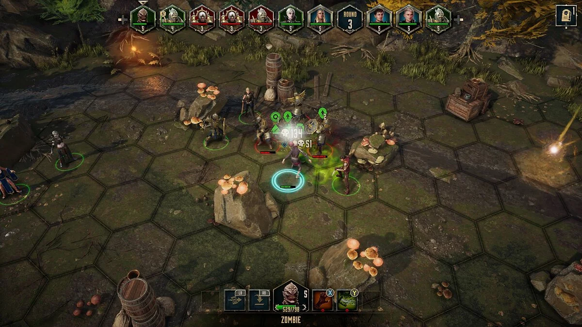 По началу боёвка кажется недурной. У каждого юнита есть свои фишки. Ассасин умеет становиться невидимым и далеко ходит. Арианна мощно бьёт круговым ударом. Зомби плюются и отравляют супостатов. Рыцарь выбивает из равновесия мощным ударом щита. Некромант воскрешает и берёт под контроль врагов, которых убил своими руками.