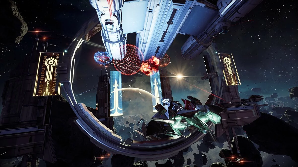 Во время заданий героиня будет летать по красивому космосу и болтать с NPC, но главная механика Chorus — космические бои. По началу сражения кажутся примитивными: догоняете вражеские истребители, уворачиваетесь от залпов, заходите в тыл и разносите негодяев на кусочки.