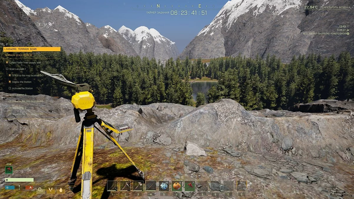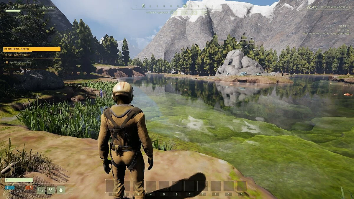 Поначалу задания будут простыми. Первым делом нужно просто поглазеть на планету, собрать веточки, полупить камни друг об друга и поджарить рыбёху. Затем герою предложат взять исследовательский зонд и просканировать местность в нескольких местах — для этого придётся отойти от капсулы подальше и впервые позаботиться о потребностях вроде жажды.