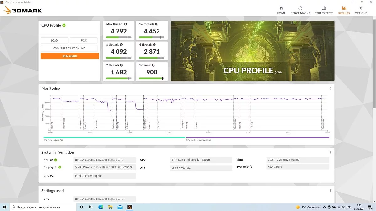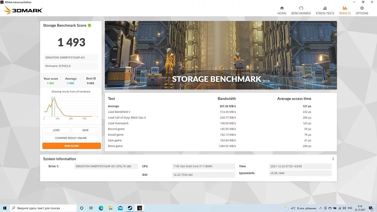 Также мы оценили мощность ноутбука в 3DMark: в тестах Time Spy, CPU Profile, Port Royale. Скорость работы SSD мы проверили в отдельном тесте Storage Benchmark.
