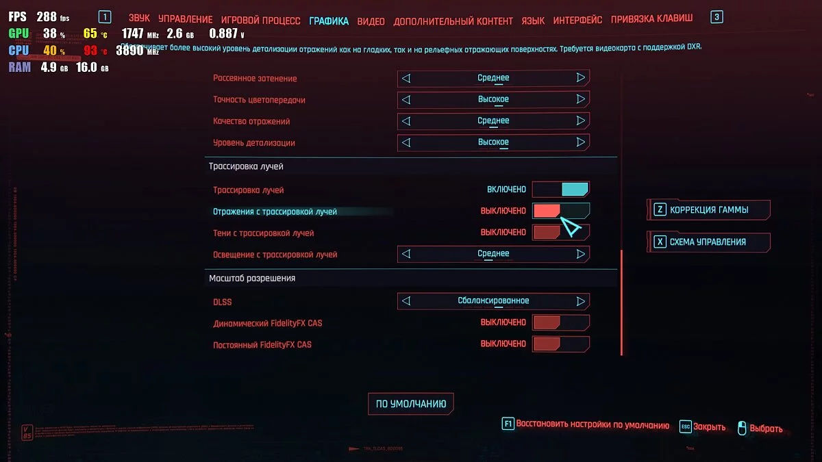 Все игровые тесты проводились в режиме максимальной производительности в разрешении Full HD. Мощность NVIDIA GeForce RTX 3060 для ноутбуков не позволила нам использовать ультра-настройки, поэтому во всех играх были выставлены только высокие и очень высокие значения. Также были использованы средние настройки трассировки лучей и сбалансированные настройки DLSS, где это возможно.