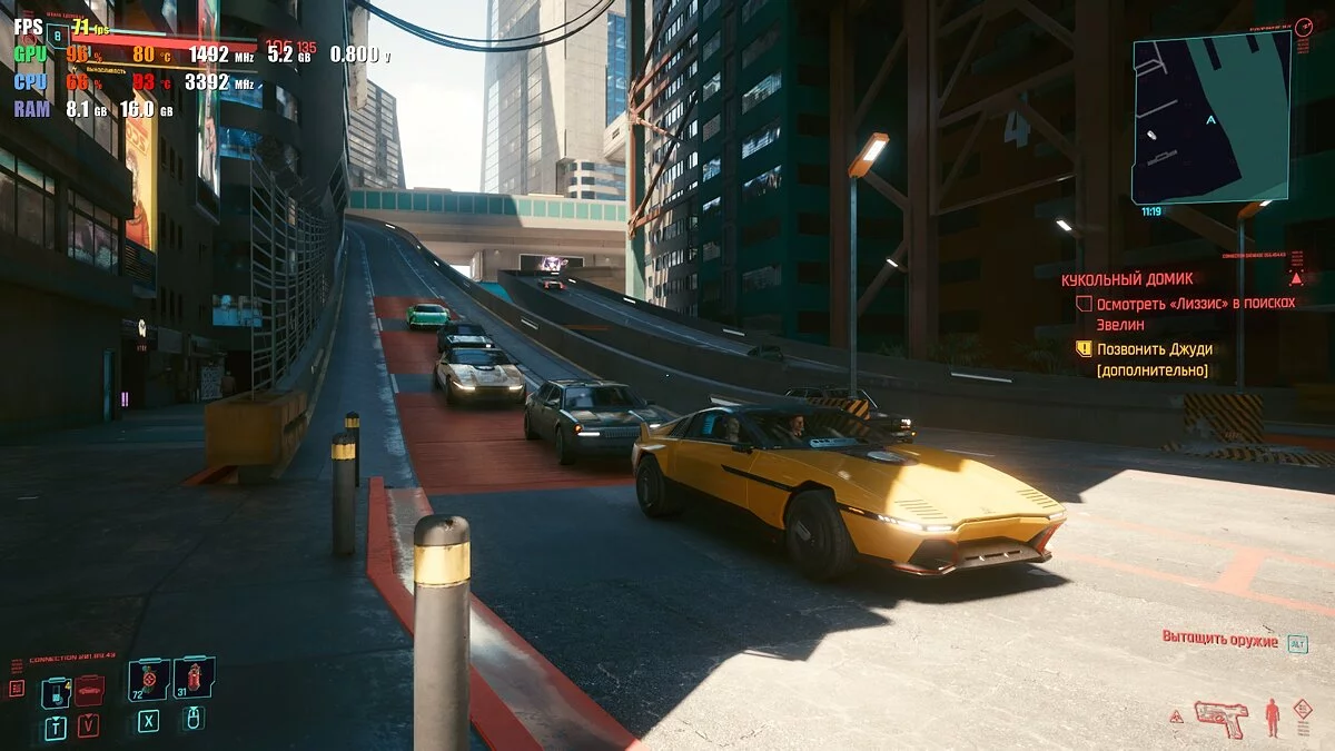 Forza Horizon 5. Гоночная игра наотрез отказалась запускаться с приложением по захвату частоты кадров, поэтому мы использовали встроенный счётчик. При высоких настройках FPS не опускался ниже 75.