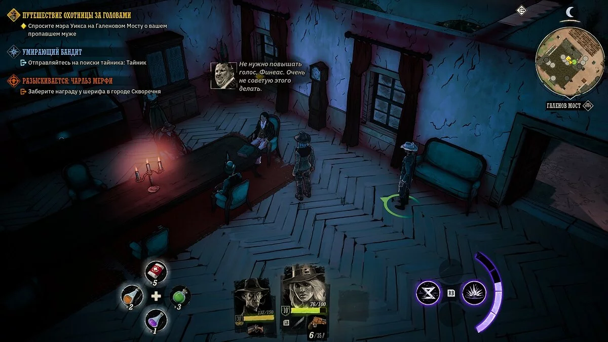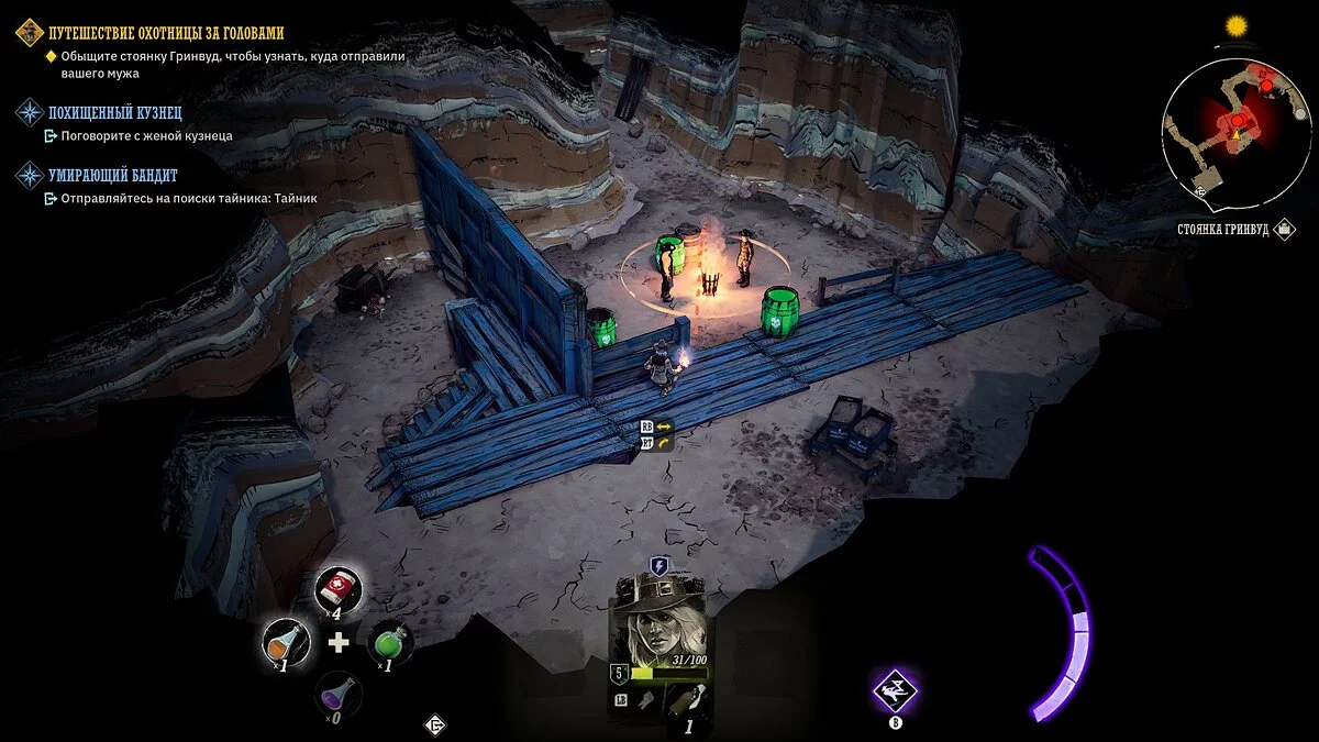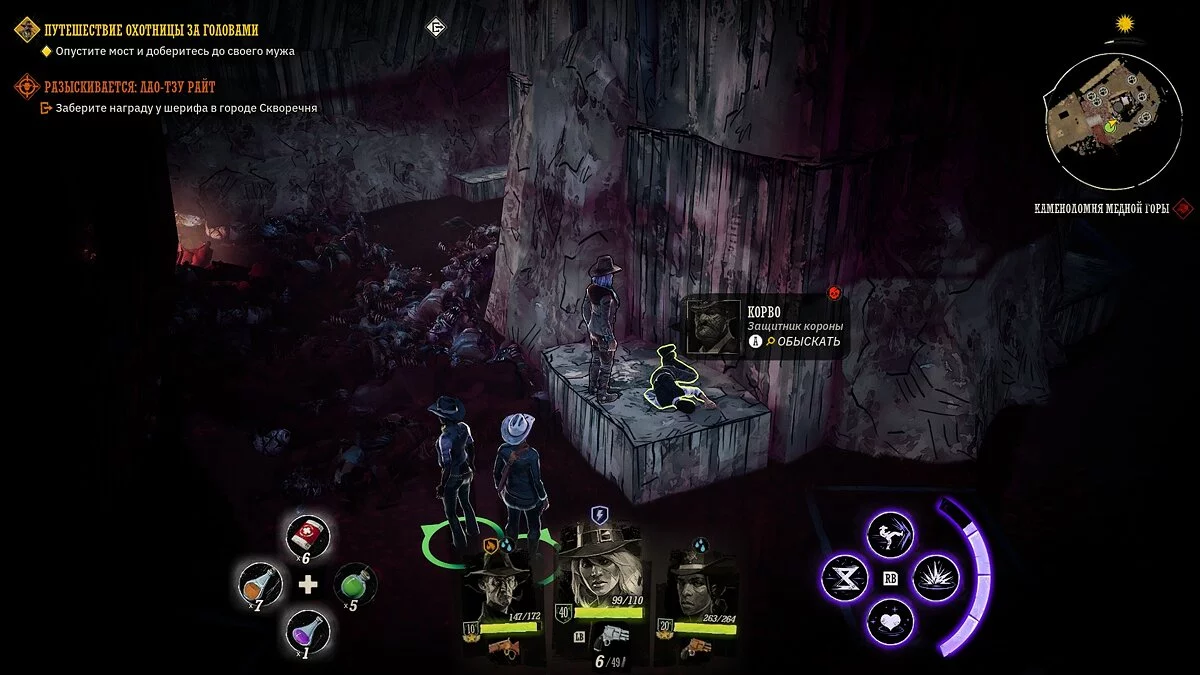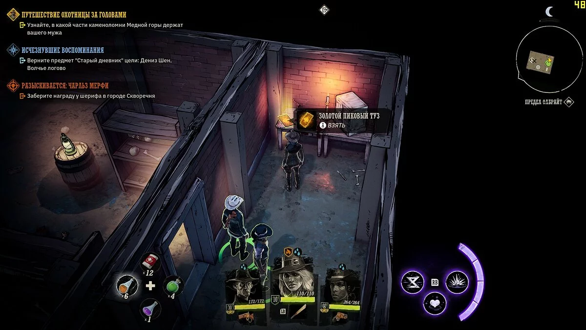 В Weird West большая глобальная карта, по которой раскидано множество точек интереса: города, пещеры, бандитские лагеря, поместья — чего там только нет. В начале прохождения изучать их любопытно. Повсюду полно деталей, лута, секретов и прочего добра, да и нарисовано всё красиво.
