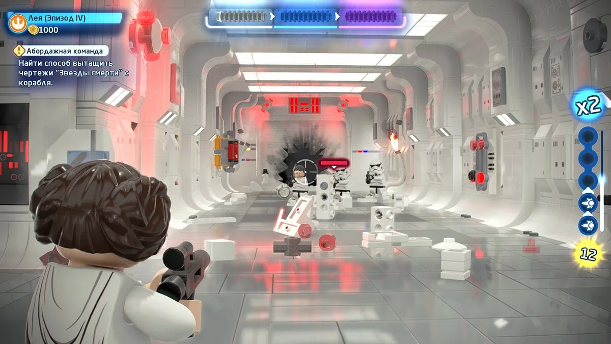 Поначалу до большинства блоков не добраться. Для этого нужны особые умения, а у каждого героя они свои. Джедай всегда готов поднять Силой что-нибудь тяжёлое и переставить в нужное место или взять под контроль моба и открыть запертую дверь. C-3PO ловко перехватывает управление турелями. Мусорщики крюком цепляются за крепления и забираются в недоступные для других места.
