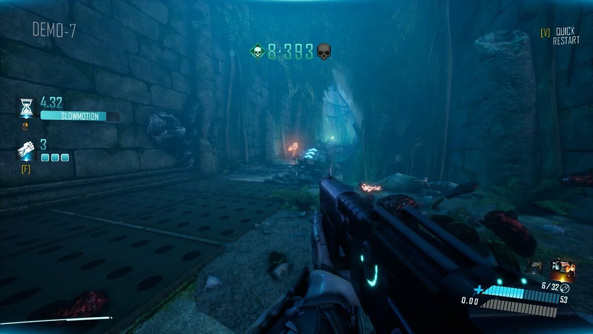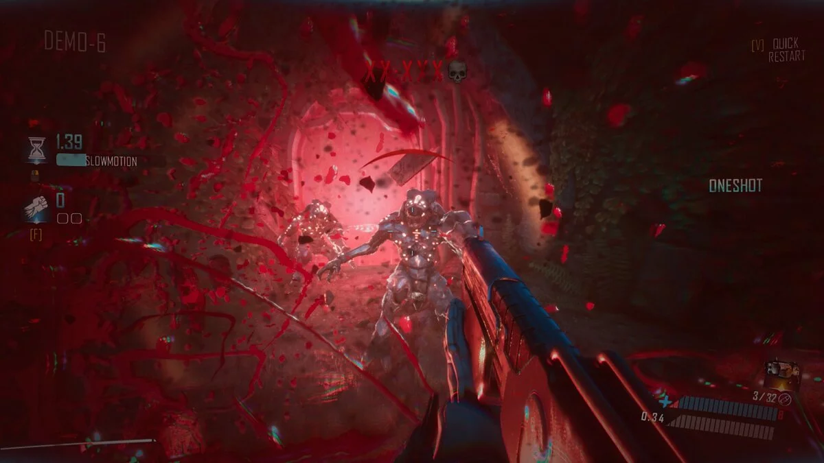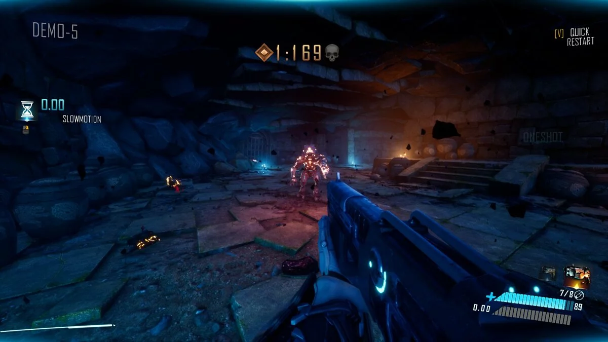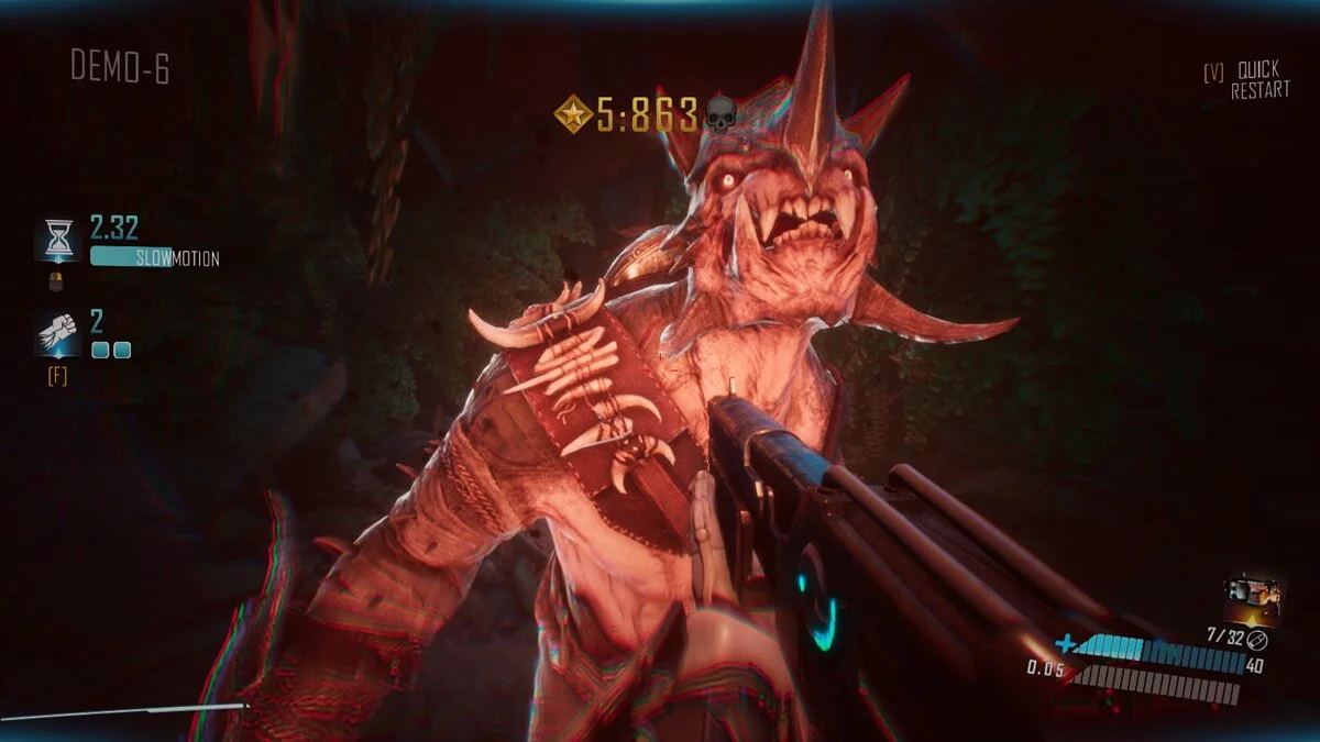 Увы, в отличии от Палача Рока герой не может кружить вокруг неприятеля и стрелять, пока цель не погибнет. Или же заветную дверь могут охранять пять злющих тварей, отстреливать которых по отдельности слишком долго. Всё-таки замедлиться — значит опоздать.