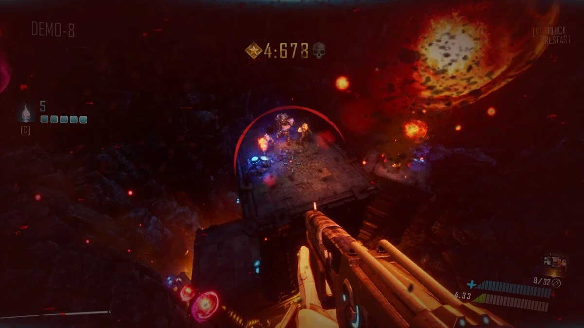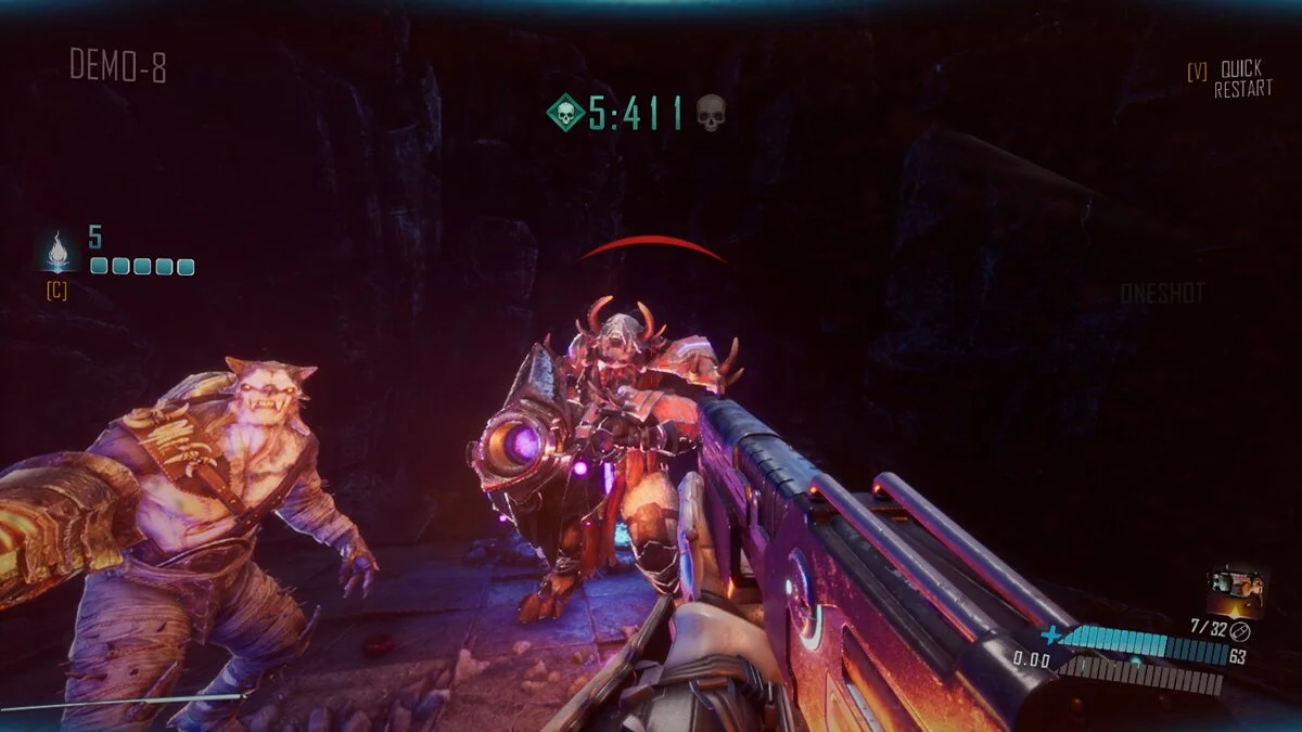 По роликам казалось, что из хитовой DOOM взяли шутерную механику. Брутально добивать врагов герой не умеет, но в бою ему часто приходится жонглировать пушками, вычислять идеальную очерёдность устранения гадов и разносить их залпами дроби. К тому же по локациям персонаж шустро носится в стиле Думгая.