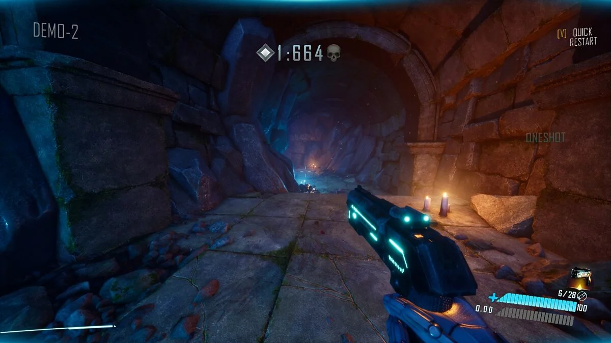 В DOOM сюжет был примитивным, однако у Думгая всё же была мотивация, и он ей следовал. В Ghostrunner герой тоже имел понятную цель. А вот в Warstride Challenges персонаж просто носится по локациям и пытается максимально быстро добраться до финала.