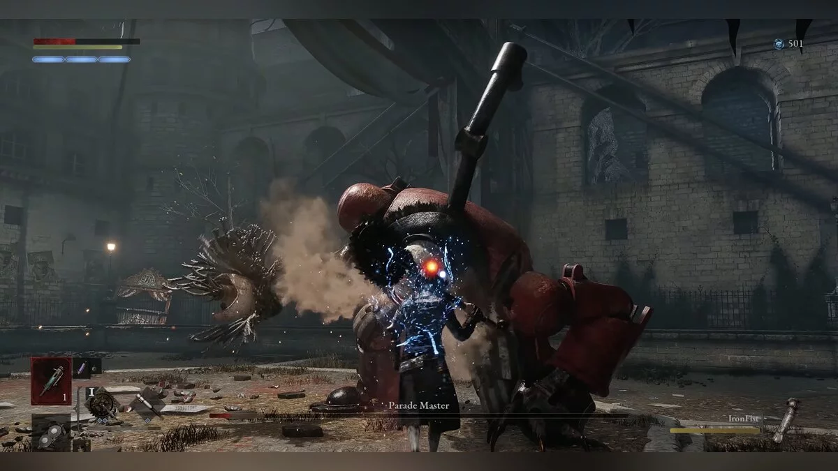 Парирование, похоже, станет одной из основных механик боя. В роликах герой то и дело отражает атаки марионеток. Без снаряжения показатель урона и защиты врагов резко снижается. Значит ли это, что боссов можно одолеть лишь через парирования, как в Sekiro: Shadows Die Twice? Пока непонятно.