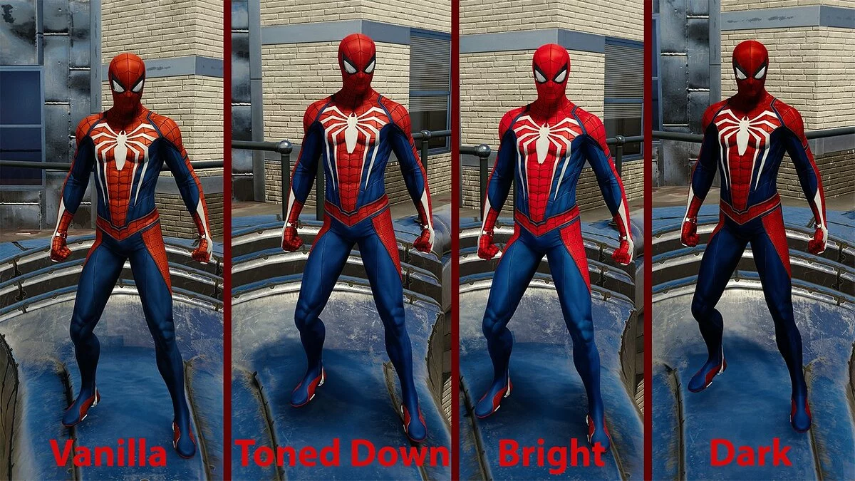 Возможно, вы заметили, что оригинальный костюм Паука в игре «какой-то не такой». Всё дело в оранжевом оттенке. Мод слегка меняет значения красного и синего цветов, делая одежду героя действительно красно-синей.