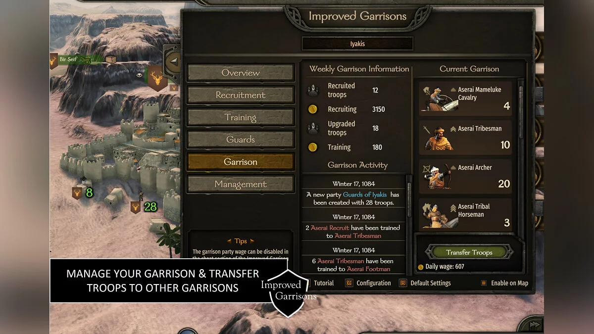 Improved Garrisons перерабатывает систему управления своими замками и поселениями, значительно улучшая интерфейс и расширяя возможности этой механики.