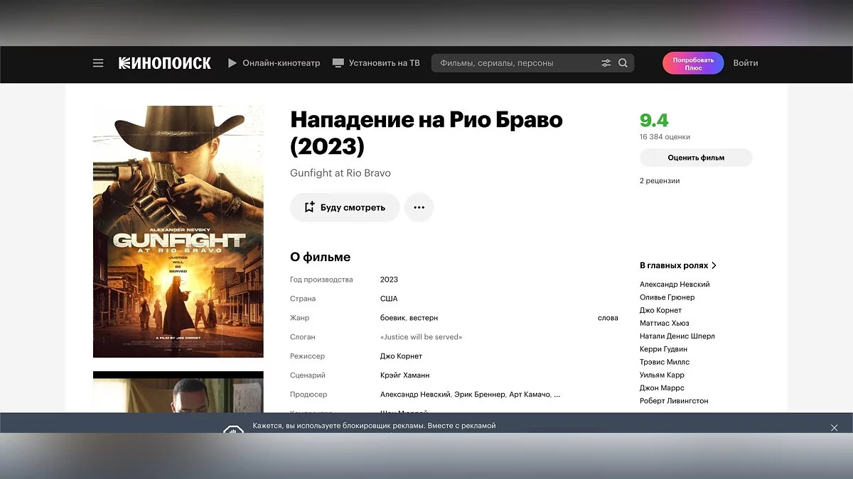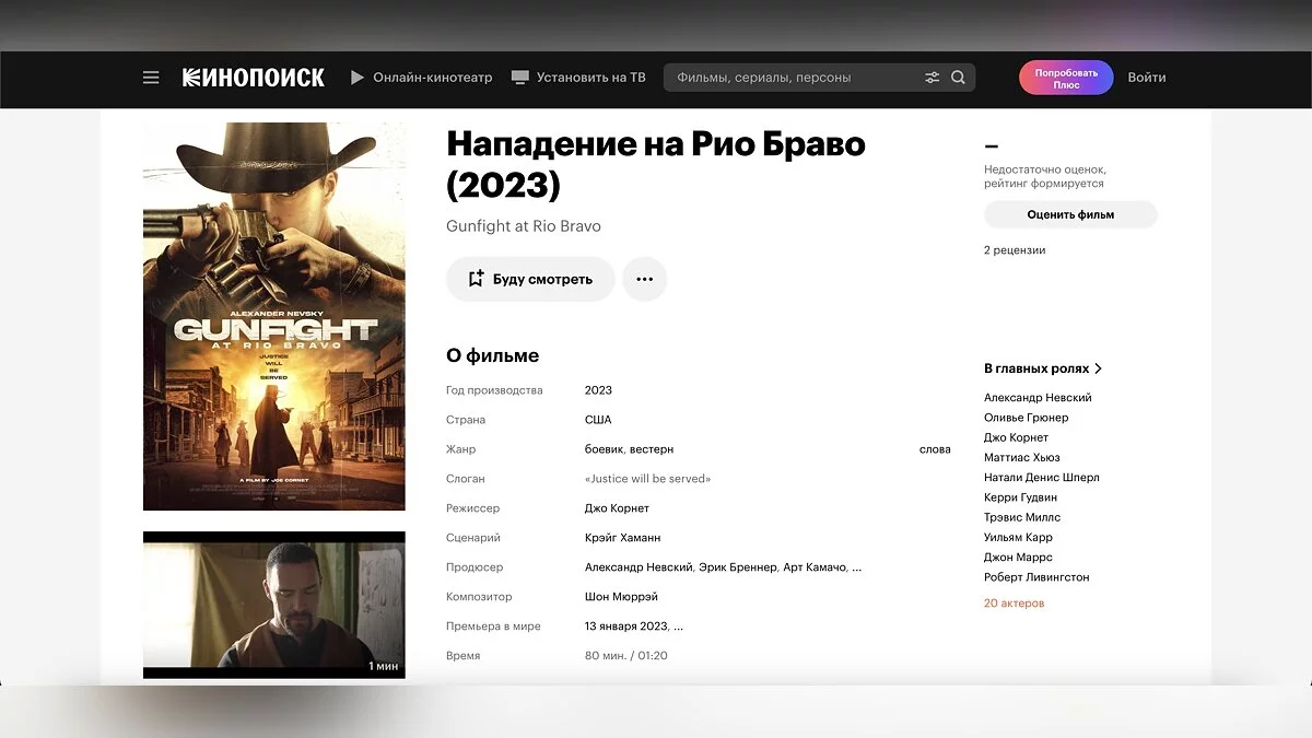 От себя хотим добавить, что тоже посмотрели «Нападение на Рио Браво». Что ж, обойдемся без спойлеров к легендарной картине и скажем только одно — это действительно лучший фильм Невского как в плане постановки, так и актерской работы. «Друг Шварценеггера» определенно сделал огромный шаг вперед, с чем мы его и поздравляем. Посмотрите фильм самостоятельно и напишите в комментариях ваше мнение — заслуживает ли новинка 10 баллов или все-таки 9,5.