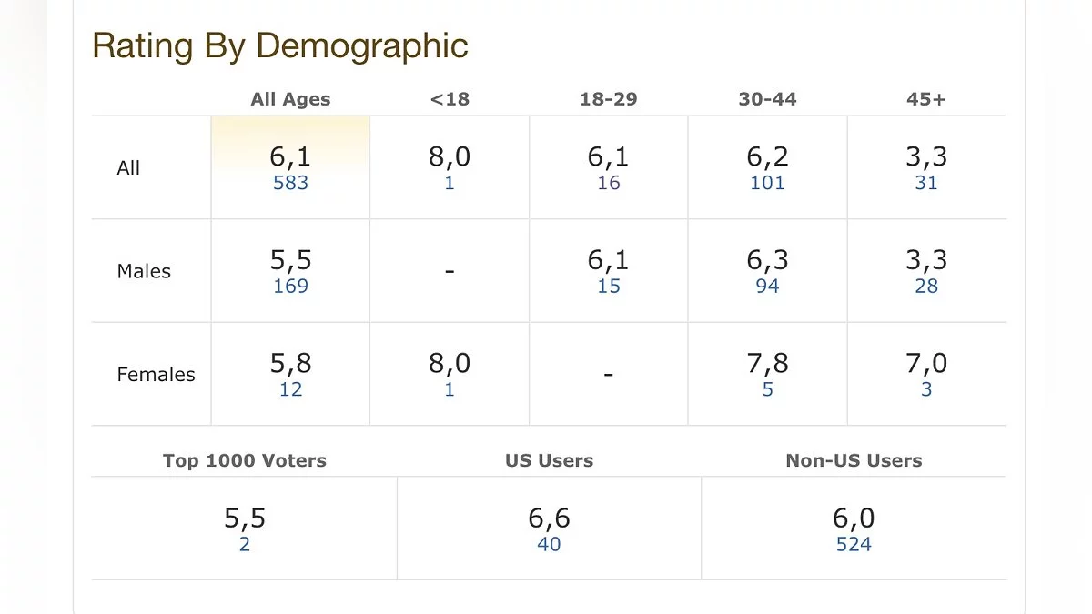 Теперь обратимся к IMDb. Здесь все еще интереснее. Сейчас у фильма довольно средний рейтинг 6,1 из 10, хотя недавно был аж 8,5. Если зайти в детализацию, выясняется, что из 583 (число постоянно меняется) оценивших 382 человека поставили научно-фантастической комедии (сарказм) Невского максимальные 10 баллов. Однако всё в той же детализации чуть ниже указано, что не американских рецензентов было 524 и средний балл, который они выставили, всего 6.