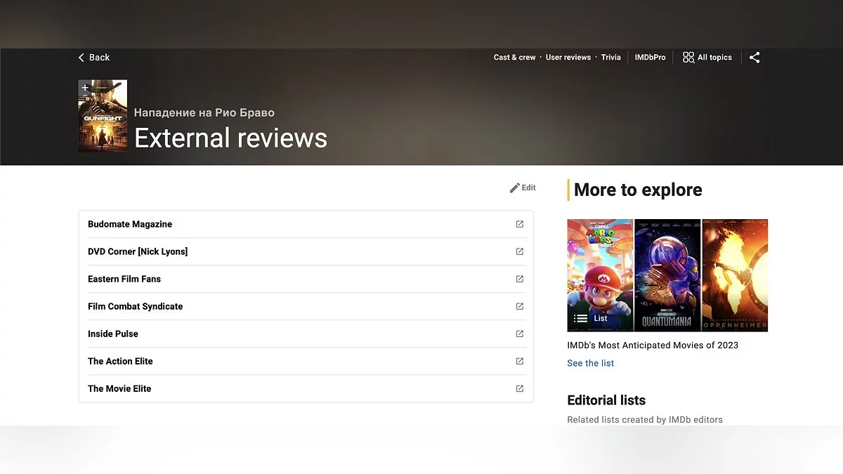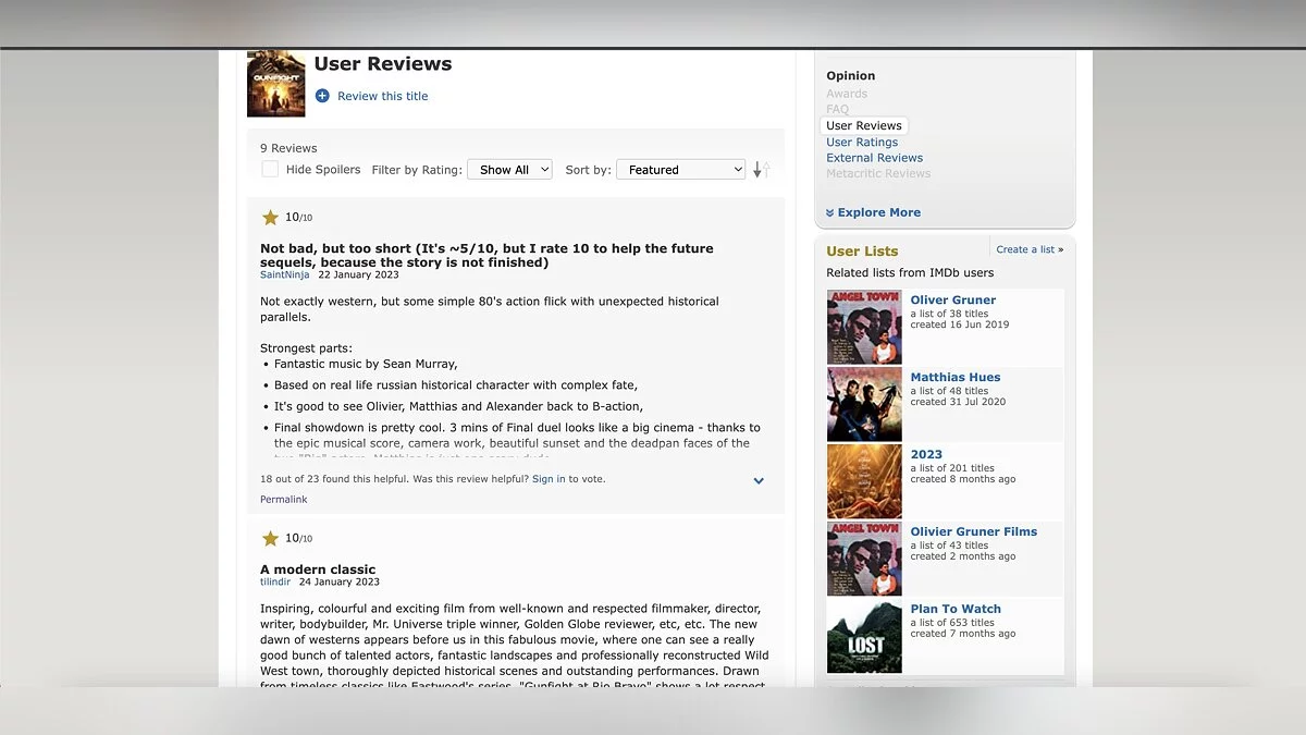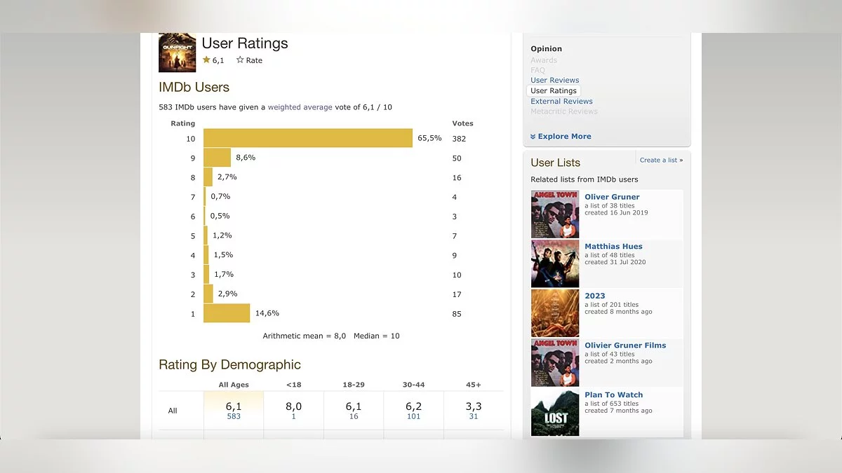 Если с оценкой начинает происходить что-то странное, администрация применяет альтернативный механизм подсчета голосов. Это объясняет расхождение в показателях и приводит к неутешительному выводу — большинство десяток «Нападения на Рио Браво» вызывает у IMDb подозрения.