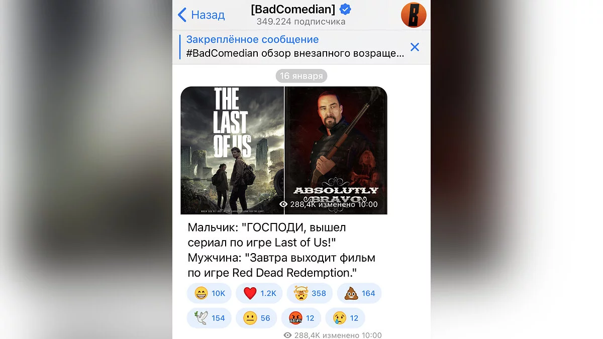 Учитывая обстоятельства, нет сомнений, что все эти 10 и 9 баллов не имеют ничего общего с качеством фильма. На такие восторги повлияло два фактора. Первый — все тот же BadComedian. В своем Telegram-канале он уже отписался, что посмотрел новинку Невского, и даже пошутил, что ждал её больше сериала «Одни из нас» (The Last of Us). Второй — множество фанатов блогера ринулись ставить высочайшие оценки просто ради смеха и шутки. Даже если Невский не поймет прикол, вряд ли такие шалости сделают ему хуже.