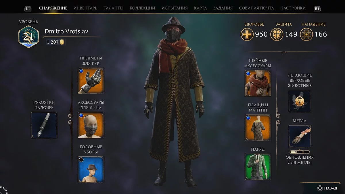 В качестве снаряжения учитываются перчатки, аксессуары для лица, головные уборы, шарфы, наряды и мантии, либо плащи. Образы получаются разнообразные, но не всегда уместные. Например, в таинственном магическом храме я нашел маску, внимание, из психиатрической лечебницы, часть игры проходил в пижаме, а иногда носил кепку водителя маршрутки. Хорошо, что видимость «шлема» можно отключить.