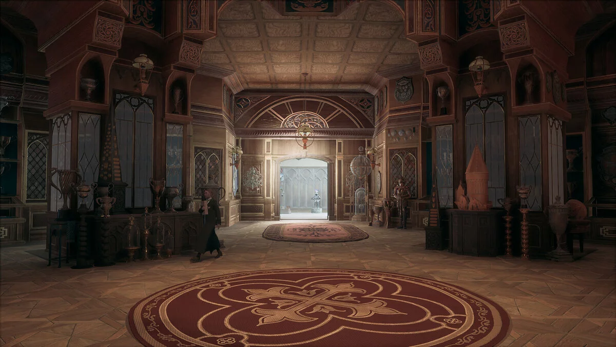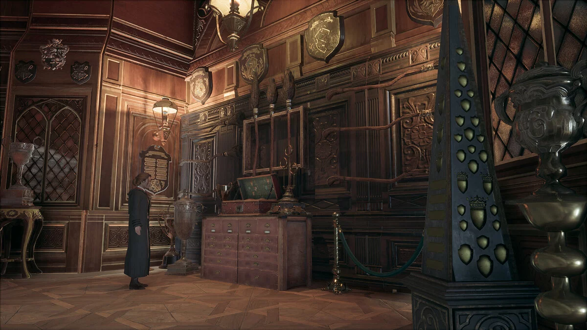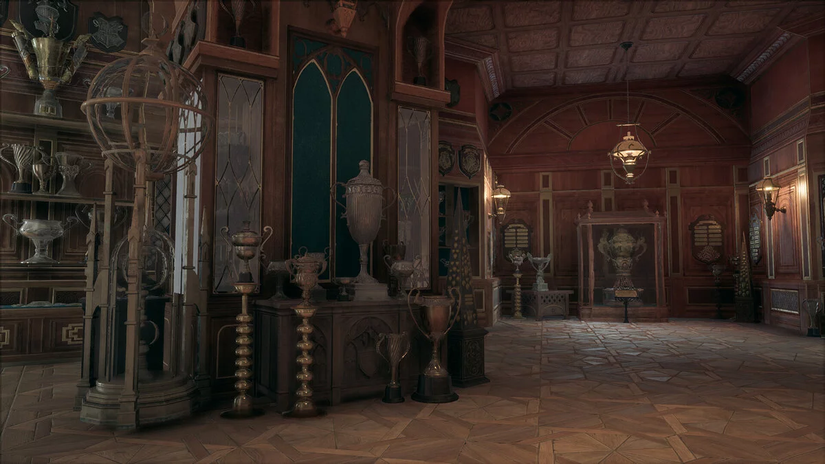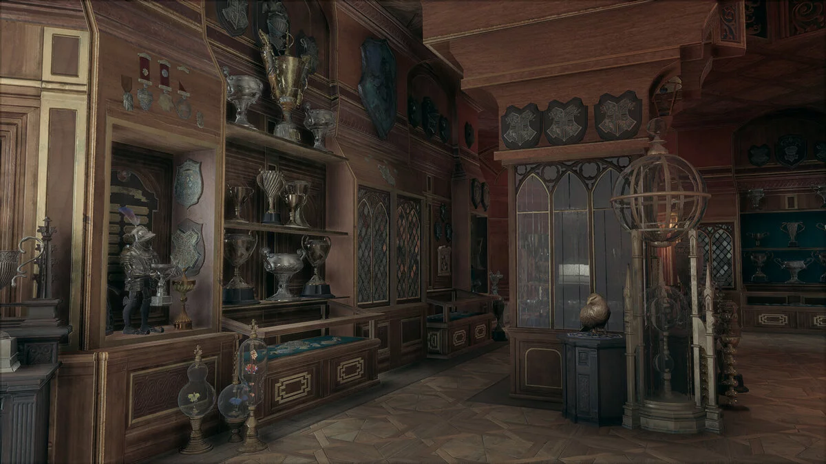 В «Кубке огня» (Harry Potter and the Goblet of Fire) в Зал трофеев Гарри попадает прямо из Большого зала и, по логике сценаристов фильма, это помещение находится где-то ниже. Авторы Hogwarts Legacy решили придерживаться книжной версии, в которой этот зал находится даже выше основных лестниц Хогвартса, на четвертом этаже замка. И его дизайн, судя по всему, создавался с оглядкой на книжное описание.