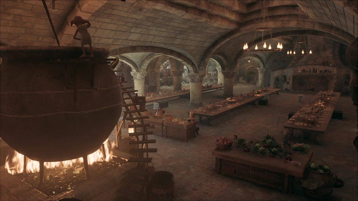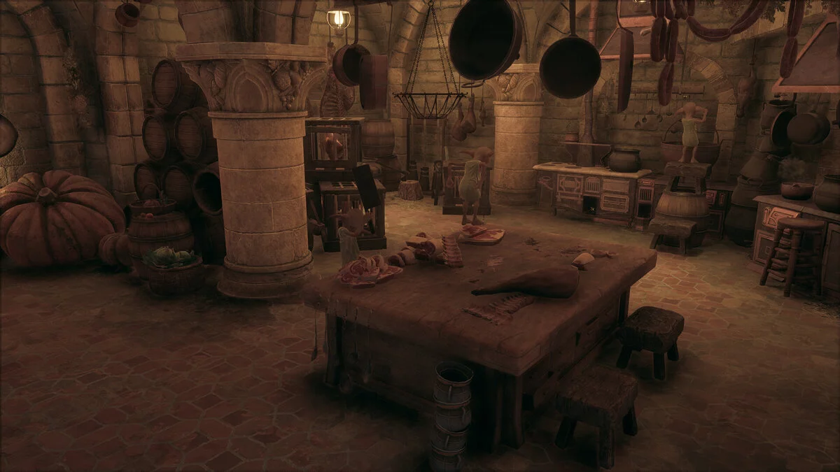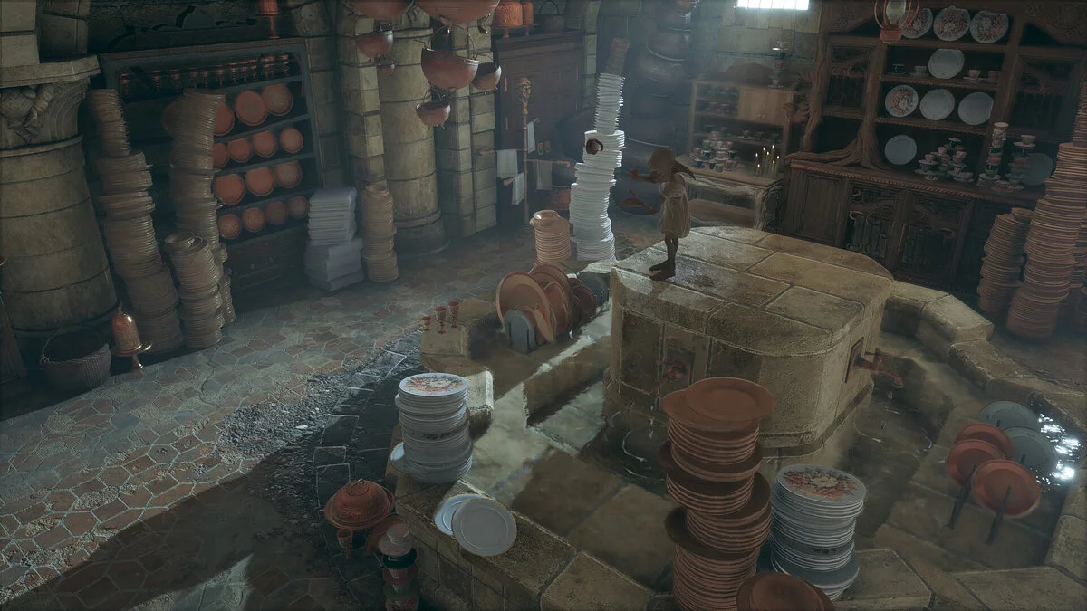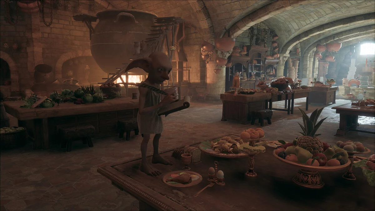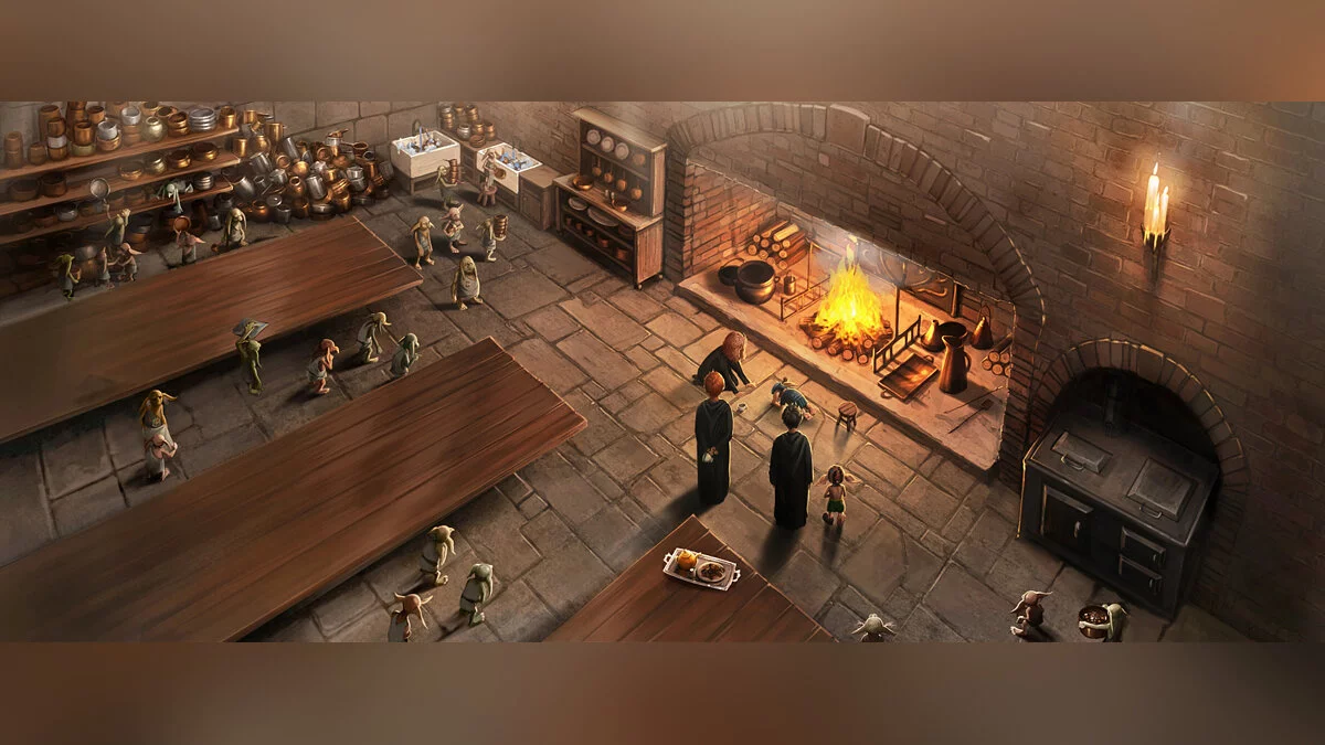 Разработчикам пришлось опираться на книжные описания и слова самой Роулинг. И они с этим прекрасно справились, сохранив магическую атмосферу и важные элементы. Так, кухня расположена прямо под Большим залом и повторяет контуры помещения. Здесь есть копии столов факультетов, а особа магия домовиков «телепортирует» блюда с этих столов наверх, к голодным студентам.