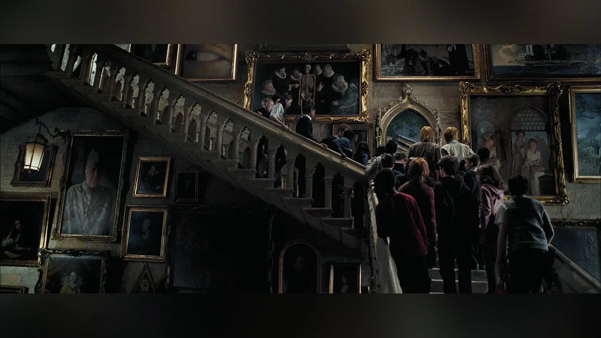 В фильмах и предыдущих играх о Гарри Поттере пространство с лестницами имело прямоугольную форму. Сами лестницы были прямыми и свободно парили в воздухе, перестраиваясь прямо со студентами «на борту». Иногда это создавало неудобства, вроде своевольного поведения лестницы в первом фильме, когда та отправила Гарри прямо к Запретному коридору на третьем этаже.
