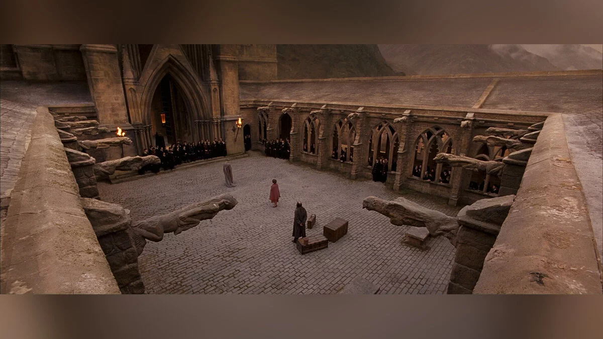 Внутренний двор — ещё одна локация, которая не упоминалась в книге, но заняла своё место в серии фильмов о Гарри Поттере. Отсюда герои наблюдали за прибытием кареты Шармбатона в Турнире трех волшебников, Долорес Амбридж пыталась уволить Сивиллу Трелони именно в этом дворе, а еще его же можно было увидеть в разрушенном состоянии во время битвы за Хогвартс.
