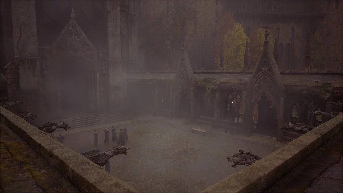В Hogwarts Legacy этот двор расположен в другом месте. Он стал частью маршрута первокурсников — сбоку к нему подходят лестницы от Лодочного сарая, а примыкающие двери замка ведут прямо в большой зал. Двор, в отличии от варианта из фильмов, замкнут и не ведет к акведуку, на котором Гарри ломает Бузинную палочку. В остальном он старается копировать привычную зрителям версию.