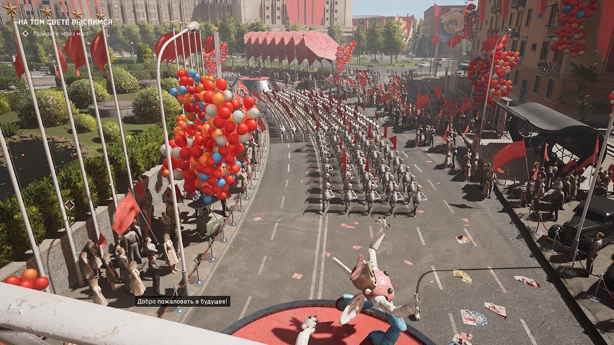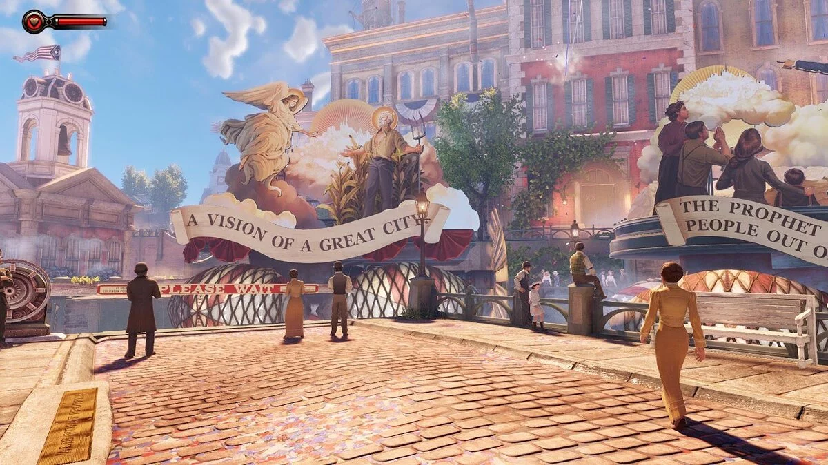 А помните, как начиналась BioShock Infinite? Вы попадаете в воздушный город Колумбия, в котором ждёт точно такое же вступление: счастливые местные жители, праздник и парад, которые затем сменяются катастрофой и паникой.