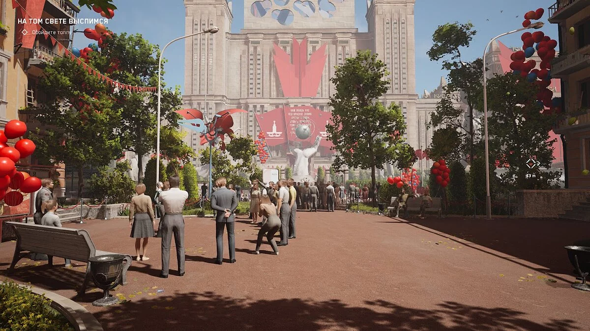 Вы попали в воздушных город и плывёте по реке, изучая местный быт и подслушивая разговоры окружающих. Особо внимательные игроки увидят множество отсылок к культуре СССР и даже заметят парочку сюжетных персонажей. Вокруг — самый разгар праздника, множество счастливых людей и роботов. Правда, это ненадолго. Вскоре всё пойдёт не по плану, а роботы попытаются убить всё живое.