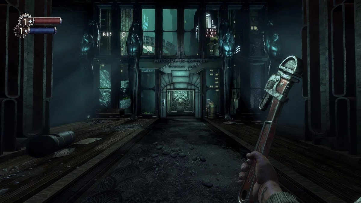 В оригинальной BioShock выбор чуть меньше, всего семь видов оружия. Зато всё прохождение необходимо комбинировать оружие, каждый враг требует особого подхода. Не особо реалистично, но позволяет не задумываться о свободном месте в рюкзаке.