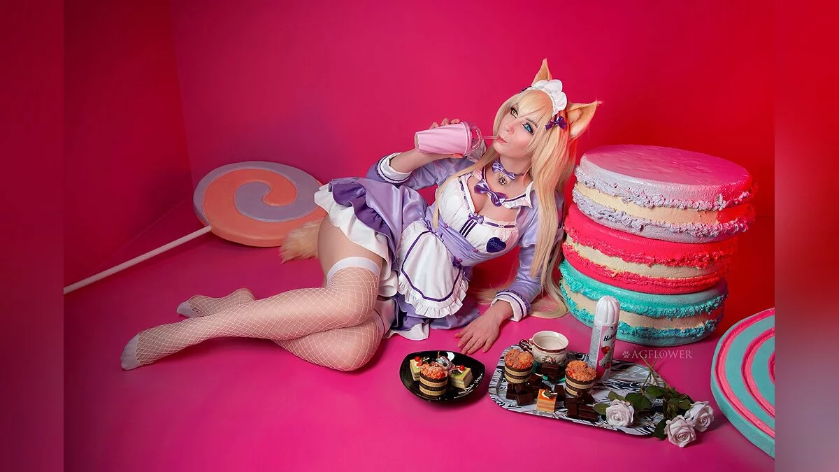 Один мой подписчик долго и упорно просил меня сделать косплей на эту кошечку. Но и мне самой она нравится. Как по мне, фотосет получился красивым и сладким.